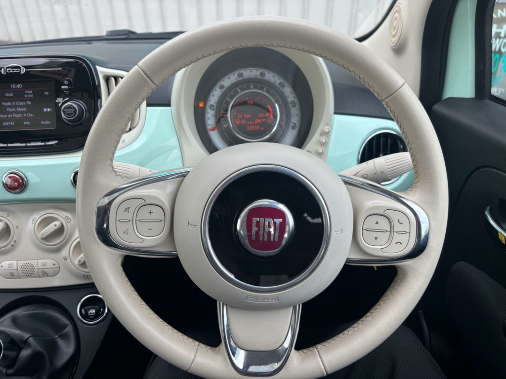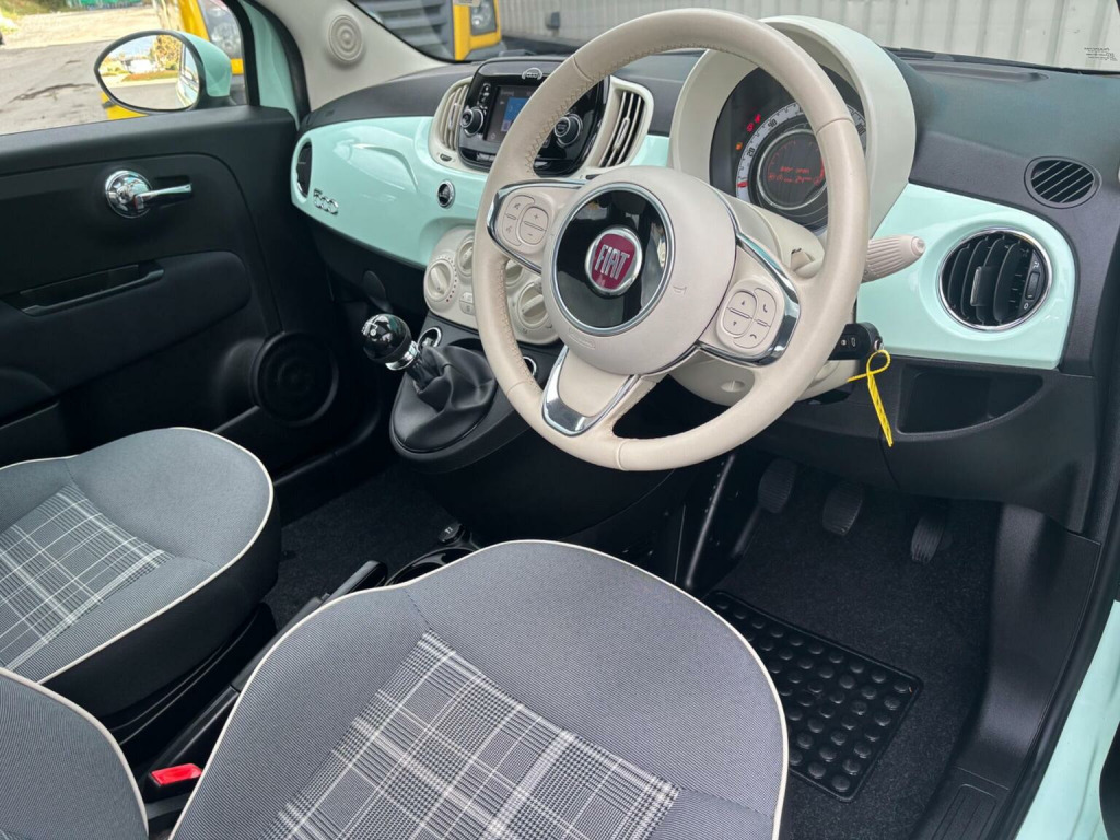 WE ARE PLEASED TO OFFER THIS HIGHLY DESIRABLE HIGH SPECIFICATION WELL MAINTAINED ECONOMICAL LOW MILEAGE LOW INSURANCE RATED PETROL EURO SIX FIAT 500 1.2 LOUNGE THREE DOOR + FINISHED IN THE BEST COLOUR OF SMOOTH MINT GREEN PAINTWORK AND IS COMPLEMENTED WITH A BLACK / IVORY AMBIENCE CLOTH UPHOLSTERY + ONLY 33,816 MILES HAS BEEN COVERED BY ONE OWNER AND IS BACKED WITH AN EXCELLENT SERVICE HISTORY + THE SERVICES HAVE BEEN CARRIED OUT AT 5373 MILES, 10014 MILES, 17901 MILES, 28991 MILES AND 33816 MILES + 12 MONTHS MOT + EXCEPTIONAL CONDITION THROUGHOUT AND DRIVES SUPERB + FULL LOUNGE SPECIFICATION WHICH INCLUDES SUNROOF / U-CONNECT / CRUISE CONTROL / MULTI FUNCTION STEERING WHEEL / 15 ALLOY WHEELS / DAB TUNER / FULL ELECTRIC PACK / REAR PARKING DISTANCE CONTROL PLUS MUCH MORE + HANDBOOK PACK + STAMPED SERVICE BOOK + 2 X KEYS + ANY TRIAL OR INSPECTION IS WELCOMED + HPI CLEAR WITH CERTIFICATE + SIX MONTHS NATIONWIDE WARRANTY IS INCLUDED + VIEWING IS ESSENTIAL TO APPRECIATE THIS TRULY CHERISHED EXAMPLE. We have been established in Baildon for over 20 years. All our vehicles are fully inspected, prepared and valeted. We are finance specialists. Part exchange is welcome. All major credit and debits accepted. Open 7 days. Our postcode is BD177EX.