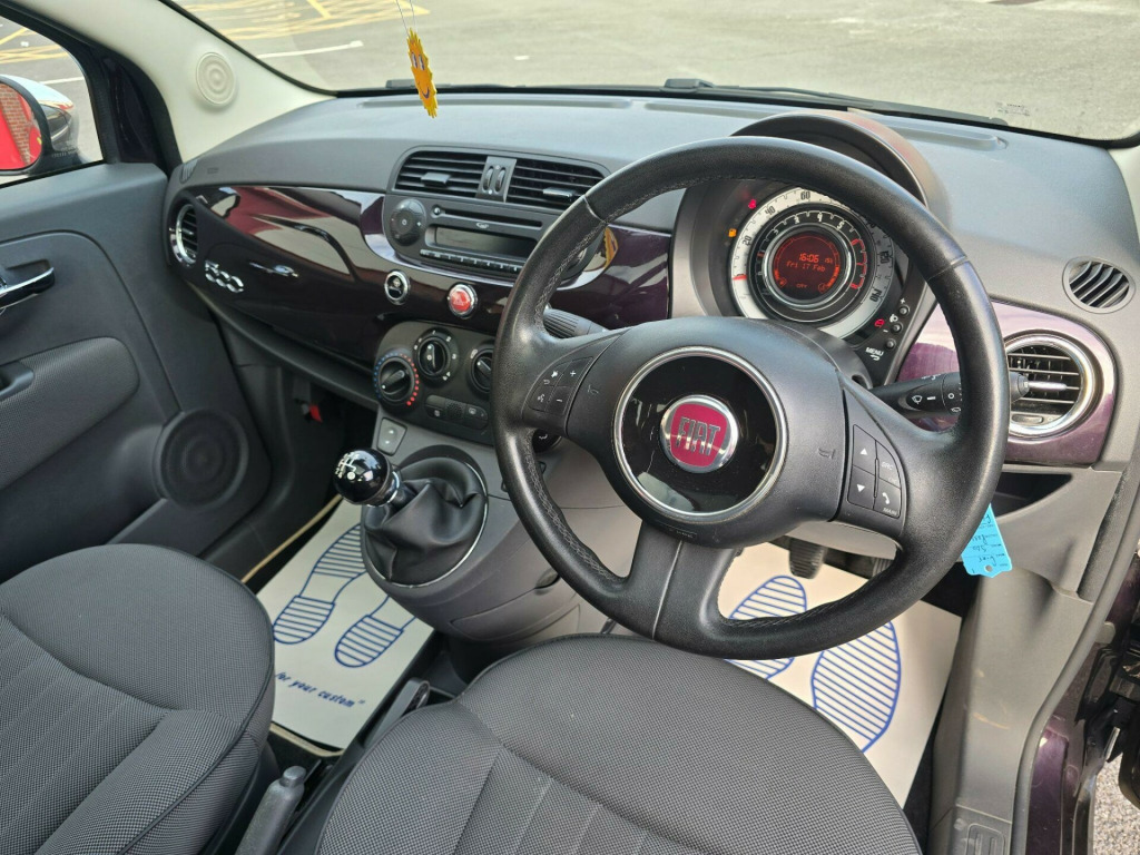 This 2013 Fiat 500 Lounge is a truly exceptional find, boasting remarkably low mileage for its age at just 59,829 miles. This particular example is powered by an efficient 1.2L petrol engine and meets the Euro 6 emission standards. Inside, you'll appreciate the comfort of air conditioning and the convenience of the Blue&Me hands free system, complete with a USB port and Bluetooth connectivity. Adding to the appeal is the fixed glass roof with its integrated sunblind, offering a bright and airy cabin experience.This Fiat 500 Lounge stands out with its impressive fuel economy, achieving an excellent 59 miles per gallon, which is better than many similar vehicles. Its low CO2 emissions also contribute to its appeal, making it a more environmentally conscious choice. Furthermore, its placement in a low insurance group means that running costs are kept to a minimum, making this a very economical and practical option for everyday driving.. 15in Alloy Wheels - 431, ABS - Anti-Lock Braking System, Air Conditioning, Airbags - Driver, Airbags - Front Side, Airbags - Passenger, Blue&Me - Hands Free System with USB Port, Body Coloured Bumpers, Body Coloured Door Mirrors, Bumpers - Chrome Inserts, Chrome Exhaust Tailpipe, Chrome Kit, Chrome Window Contours, Door Handles - Chrome, Drivers Knee Airbag, EBD - Electronic Brakeforce Distribution, Electric Front Windows, Electrically Adjustable Heated Door Mirrors, Exterior Temperature Sensor, Fixed Glass Roof with Sunblind, Head Restraints - Front Height Adjustment, Headlights - Height Adjustable, Heated Rear Window, Height Adjustable Drivers Seat, ISOFIX Child Seat Attachments, Lounge Interior Trim, Passenger Seat with Under Seat Compartment, Pollen Filter, Power Steering - Dualdrive Electric, Radio-CD and MP3 Player, Remote Central Locking, Seats - 50-50 Split Folding Rear, Seats - Passengers Back Pocket, Space Saver Spare Wheel, Steering Wheel - Height Adjustment, Steering Wheel - Leather with Audio Controls, Steering Wheel Audio Controls, Sunvisor - Drivers with Mirror, Sunvisor - Passenger with Light and Mirror, USB Port, Window Airbags.
