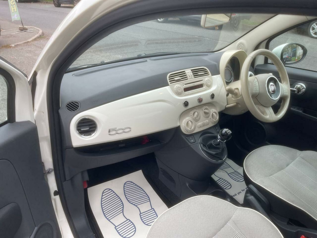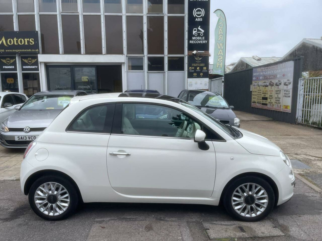 Beautiful Fiat 500 1.2 Lounge in excellent condition. Top Specs, Electric Windows, Electric Side Mirrors, Climate Control, Steering Control, Bluetooth Connection, Alloys, Isofix, and many more...., Great Mpg, cheap to Tax and Insure. ULEZ compliant, 2 Previous Owners & 2 Keys. The car has been very well looked after and comes with FULL-Service history / 4 NEW TYRES, Timing belt replaced at 01/12/2022. We had it serviced recently at 52390 miles on 02/12/2024. It has also been MOTed till 09/10/2026 with no advisory. 3 Months essential warranty with Customer Protect is also included for your peace of mind. It is in very good condition and drives very smoothly with no fault whatsoever. ALL OUR CARS ARE FULLY INSPECTED BY PROFESSIONALS PRIOR TO ADVERTISEMENT & COME WITH 12 MONTHS FREE BASIC AA BREAKDOWN COVER. Finance is also available on request. DRIVE-AWAY INSURANCE IS ALSO AVAILABLE AT A COST. TO VIEW MORE STOCK PLEASE VISIT OUR WEBSITE AT: WWW.MEGAMOTORSUK.CO.UK , in alloy wheels - 431, abs - anti-lock braking system, air conditioning, airbags - driver, airbags - front side, airbags - passenger, blue&me - hands free system with usb port, body coloured bumpers, body coloured door mirrors, bumpers - chrome inserts, chrome exhaust tailpipe, chrome kit, chrome window contours, door handles - chrome, drivers knee airbag, ebd - electronic brakeforce distribution, electric front windows, electrically adjustable heated door mirrors, exterior temperature sensor, fixed glass roof with sunblind, head restraints - front height adjustment, headlights - height adjustable, heated rear window, height adjustable drivers seat, isofix child seat attachments, lounge interior trim, passenger seat with under seat compartment, pollen filter, power steering - dualdrive electric, radio-cd and mp3 player, remote central locking, seats - 50-50 split folding rear, seats - passengers back pocket, space saver spare wheel, steering wheel - height adjustment, steering wheel - leather with audio controls, steering wheel audio controls, sunvisor - drivers with mirror, sunvisor - passenger with light and mirror, usb port, window airbags, cloth - ivory with ivory logo and ivory ambience