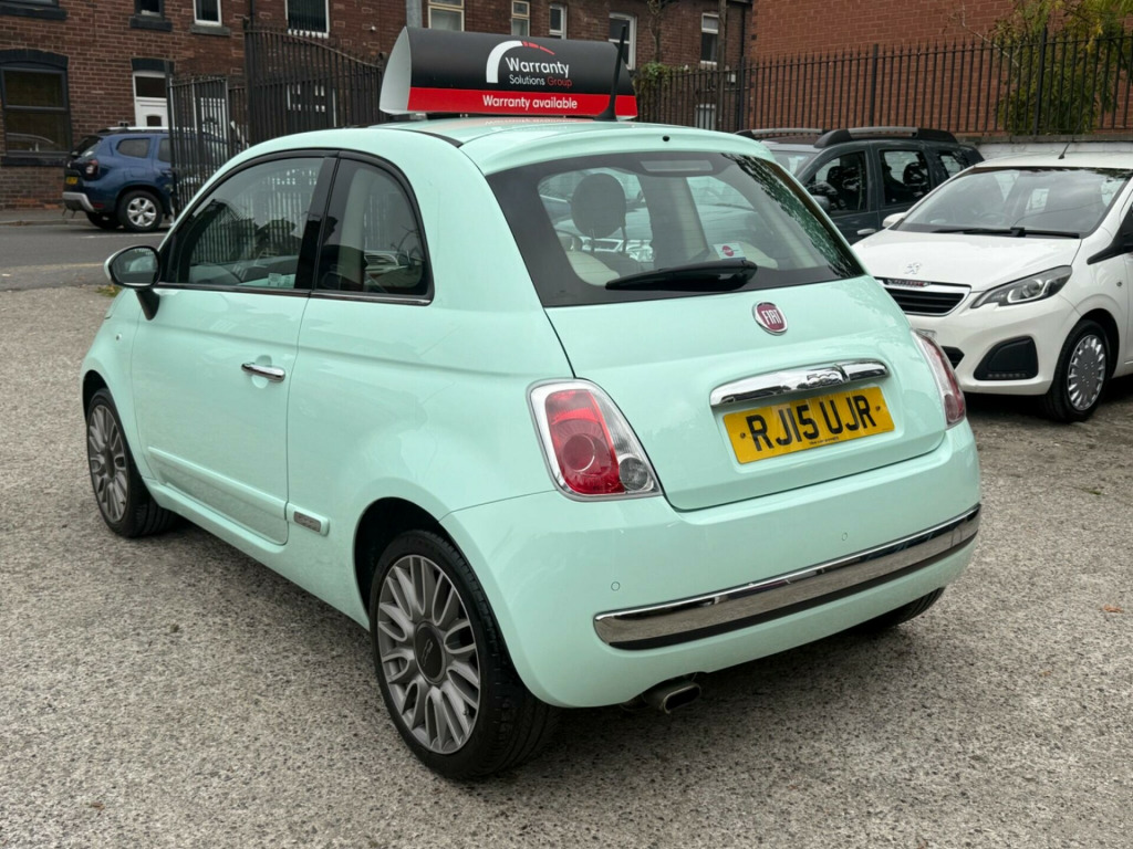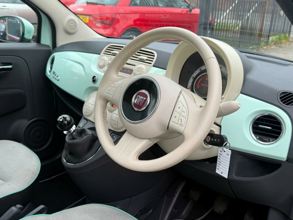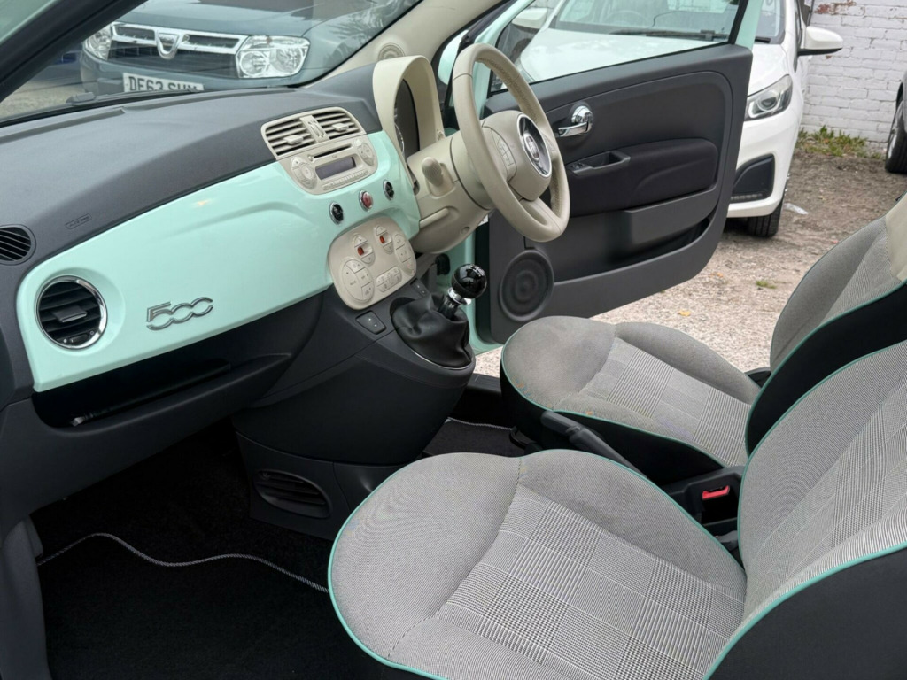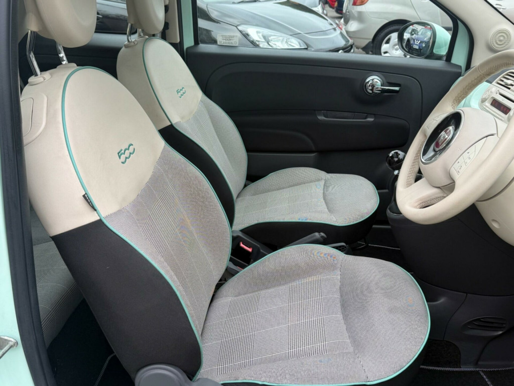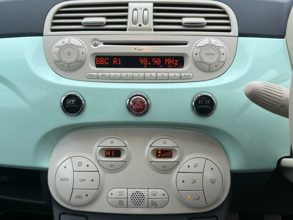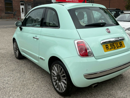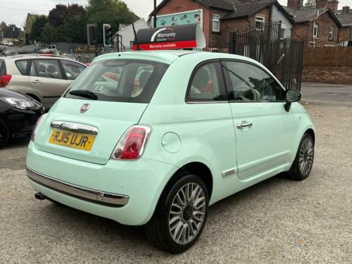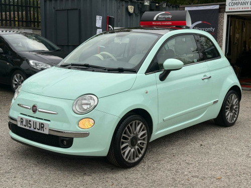 Boasting exceptionally low mileage for its age, this 2015 Fiat 500 Lounge is a truly special find. With only two previous owners and a mere 33,000 miles on the clock, this 1.2 litre petrol model represents excellent provenance. It meets Euro 6 emissions standards and comes with a 3 month warranty for your peace of mind. The vehicle also benefits from 12 months MOT provided on purchase and has a partial service history, with the last service completed at 33,433 miles. Inside, you'll appreciate the comfort and convenience of Air Conditioning, the Blue&Me Hands Free System with USB and Bluetooth connectivity, and the delightful Fixed Glass Roof with a panoramic sunroof. The Seats Memory Function adds an extra touch of luxury.This Fiat 500 Lounge stands out from the crowd with its impressive fuel economy, achieving an excellent 60 miles per gallon, and its low CO2 emissions, making it an economical choice. Furthermore, its low insurance group rating indicates that running costs are kept to a minimum, further enhancing its appeal as a practical and affordable city car.. 12V Socket - Front, 15in Alloy Wheels - 73Z, ABS - Anti-Lock Braking System, ASR - Anti-Slip Regulation, Air Conditioning, Airbags - Driver, Airbags - Front Side, Airbags - Passenger, BAS - Brake Assistance System, Blue&Me - Hands Free System with USB Port, Body Coloured Bumpers, Chrome Kit, Drivers Knee Airbag, Dualdrive Power Steering, EBD - Electronic Brakeforce Distribution, ESP - Electronic Stability Programme, Electric Front Windows, Electrically Adjustable Heated Door Mirrors, Exterior Temperature Sensor, Fix and Go Puncture Repair Kit, Fixed Glass Roof, GSI - Gear Shift Indicator, Grab Handle, Height Adjustable Drivers Seat, Hill Holder, Locking Wheel Nuts, MSR - Motor Slip Regulation, Radio-CD and MP3 Player, Remote Central Locking, Seats - Passengers Memory Function, Seats-back Pockets, Space Saver Spare Wheel, Split Folding 50:50 Rear Seat, Steering Wheel - Black, Steering Wheel - Height Adjustment, Steering Wheel - Leather with Audio Controls, Steering Wheel Audio Controls, Storage Under Passenger Seat, Thermal Windows, Tyre Pressure Monitor System, Window Airbags, Cloth - Ivory with Green Logo and Ivory Ambience. Part service history