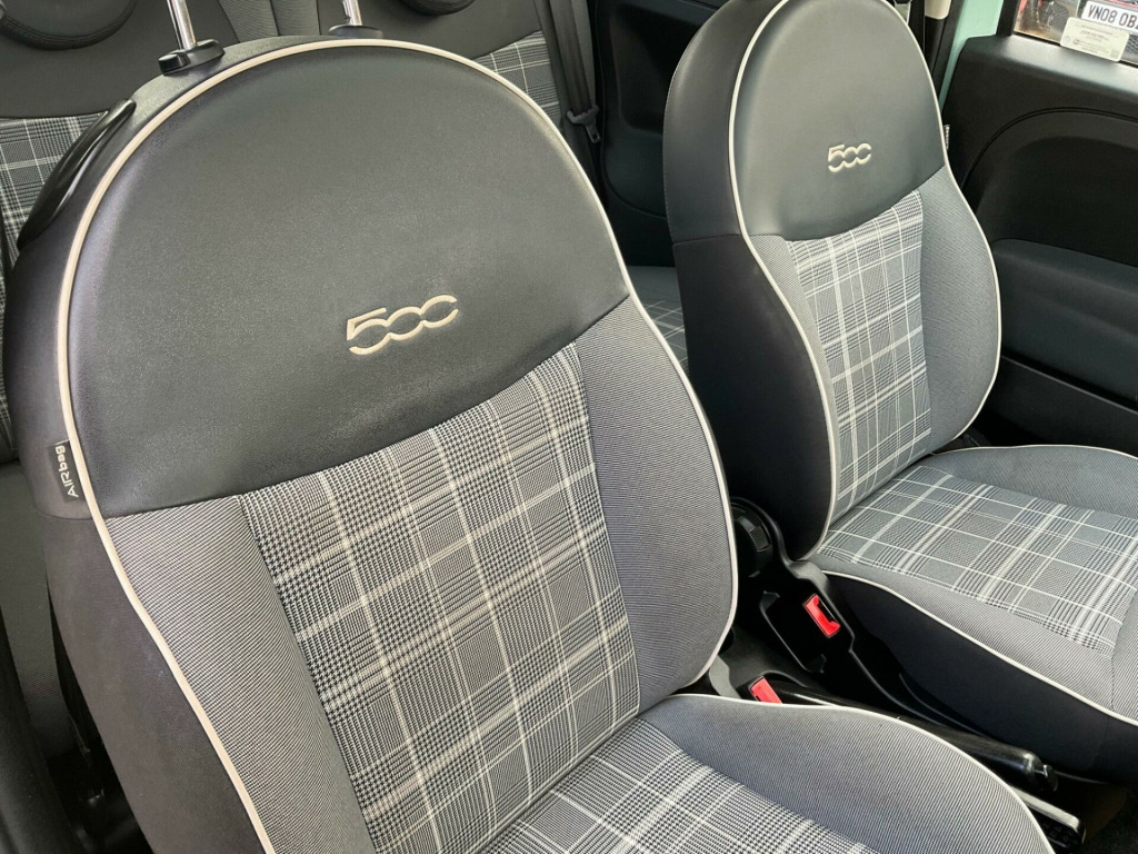 This 2019 Fiat 500 Lounge is a superb example of this popular city car, boasting a fuel efficient 1.2 litre petrol engine and meeting Euro 6 emissions standards. The Lounge trim level offers a comfortable and well equipped interior, featuring air conditioning to keep you cool on warmer days and front seats with a convenient memory function. You can enjoy your favourite music and podcasts through the 5 inch touchscreen radio, which includes AUX, USB, DAB, and Bluetooth connectivity. Adding to the sense of space and light, the fixed glass roof with its integrated sunblind creates an airy cabin atmosphere.This Fiat 500 is also fitted with rear parking sensors, making manoeuvring into tight spots much easier. A key benefit of this particular model is its low insurance group, which can help to keep your running costs down. Furthermore, its low CO2 emissions indicate that it is an environmentally conscious choice. These factors combined demonstrate how this Fiat 500 Lounge offers excellent value and a more economical ownership experience compared to many other vehicles in its class.. 12V Point, 15in Alloy Wheels, 50-50 Split Folding Rear Seat with Height Adjustable Head Restraints, 5in Touchscreen Radio with AUX - USB - DAB - Bluetooth, ABS with EBD, Air Conditioning, Automatic Door Locking, Body Coloured Bumpers, Chrome Kit, Chrome Plated Exterior Door Handles, Cruise Control, Driver and Passenger Airbag with Dual Stage System, Drivers Knee Airbag, Dualdrive Power Steering, ESC - Electronic Stability Control, Electric Front Windows, Electrically Adjustable Painted Door Mirrors with Defrosting and External Temperature Sensor, Fix and Go Puncture Repair Kit, Fixed Glass Roof with Sunblind, Fog Lights, Front Seat Belts with Pretensioners - Load Limiter And Fastening Sensor, Front Seats with Memory Function, Hazard Light Automatic Activation During Emergency Braking, Heat Reflective Windows, Heated Rear Window, Height Adjustable Drivers Seat, Height Adjustable Front Head Restraints, ISOFIX Attachment Points for Child Safety Seat On Rear Seat, Instrument Panel with Rev Counter, LED Daytime Running Lights, Rear Parking Sensors, Rear Window Wiper-Washer, Remote Central Locking, Seats-back Pockets, Side Airbags, Speed Limiter, Steering Wheel - Height Adjustment, Steering Wheel - Leather with Audio Controls, TPMS - Tyre Pressure Monitoring System, Window Airbags, Cloth - Black-Light Grey-Ivory with Black Ambience.