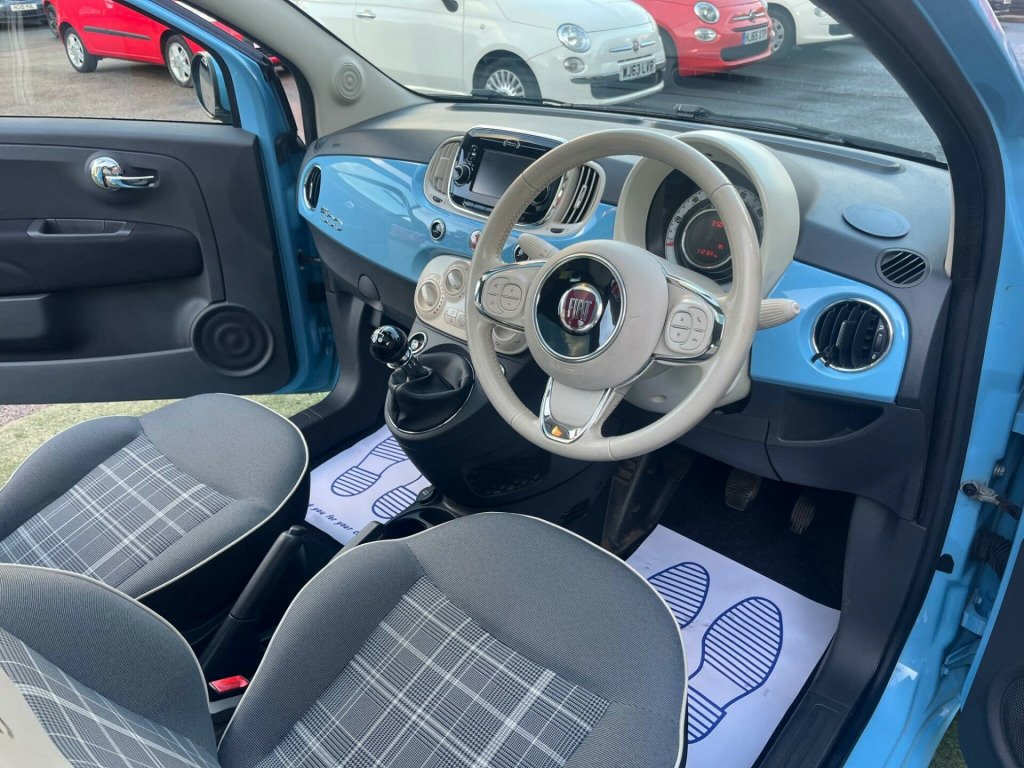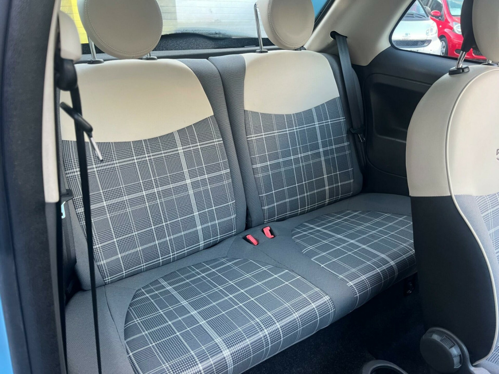 FULL 12 MONTH MOT!!FULL 12 MONTH AA BREAKDOWN COVER!!FULL HPI CERTIFICATE!!FULL SERVICE HISTORY!!FRESHLY SERVICED!!THIS VEHICLE IS IN AN EXCELLENT CONDITION, INTERIOR & BODYWORK!! A GREAT SPECIAL INCLUDING MEDIA / BLUETOOTH / ELECTRIC WINDOWS & MIRRORS / AIR CONDITIONING / ALLOYS / REMOTE CENTRAL LOCKING ETC..A BEAUTIFUL IN BLUE FIAT 500 1.2 LOUNGE IN AN EXCELLENT CONDITION WITH FULL SERVICE HISTORY / SPARE KEY & 1 OWNER FROM NEW, THE FIRST TO SEE WILL BUY!! ace saver spare wheel, cloth - black-light grey-ivory with ivory ambience, 12v socket - front, 15in alloy wheels, 50-50 split folding rear seat with height adjustable head restraints, 5in touchscreen radio with aux - usb - dab - bluetooth, 7 airbags, abs with ebd, air conditioning, automatic door locking, body coloured bumpers, chrome kit, chrome plated exterior door handles, dualdrive power steering, esc - electronic stability control, electric front windows, electrically adjustable painted door mirrors, fix and go puncture repair kit, fixed glass roof with sunblind, fog lights, front seats with memory function, fuel cap with tap, gsi - gear shift indicator, hazard light automatic activation during emergency braking, heat reflective windows, heated rear window, height adjustable drivers seat, height adjustable front head restraints, isofix attachment points for child safety seat on rear seat, instrument panel with rev counter, led daytime running lights, rear parking sensors, rear window wiper-washer, remote central locking, seats-back pockets, steering wheel - height adjustment, steering wheel - leather with audio controls, tpms - tyre pressure monitoring system, trip computer