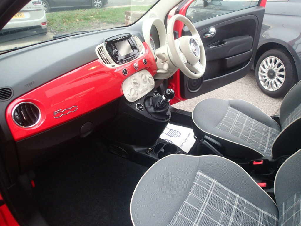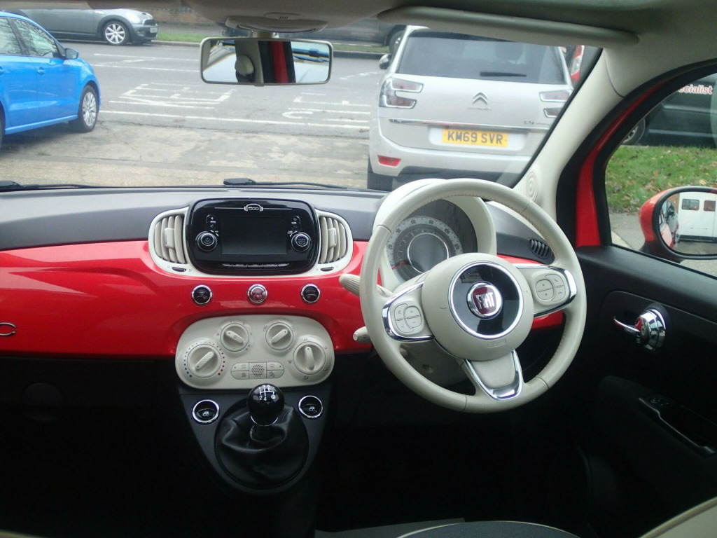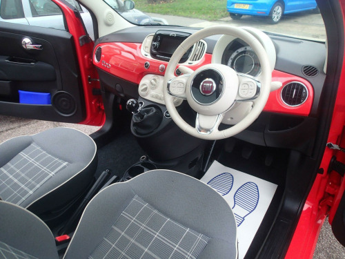 This 2019 Fiat 500 Lounge is a fantastic example of a well maintained city car. Powered by an efficient 1.2 litre Euro 6 petrol engine, this model offers a smooth and economical driving experience. The Lounge trim level comes with a generous array of features designed for comfort and convenience, including a fixed glass roof with a sunblind that floods the cabin with light. You'll also find front seats with a memory function, making it easy to find your perfect driving position every time. For entertainment and connectivity, the 5in touchscreen radio offers AUX, USB, DAB, and Bluetooth functionality, allowing you to stream music and take calls hands free.This Fiat 500 Lounge is a smart choice for many reasons. Its Euro 6 emissions rating and low CO2 emissions mean it is kinder to the environment. Furthermore, it sits in a low insurance group, which can help to keep your running costs down. Parking is made simpler thanks to the rear parking sensors and parking assistance system. Air conditioning ensures a comfortable cabin temperature no matter the weather, making this Fiat 500 Lounge a practical and enjoyable car for everyday use., oth - black-light grey-ivory with ivory ambience, 12v point, 15in alloy wheels, 50-50 split folding rear seat with height adjustable head restraints, 5in touchscreen radio with aux - usb - dab - bluetooth, abs with ebd, air conditioning, automatic door locking, body coloured bumpers, chrome kit, chrome plated exterior door handles, cruise control, driver and passenger airbag with dual stage system, drivers knee airbag, dualdrive power steering, esc - electronic stability control, electric front windows, electrically adjustable painted door mirrors with defrosting and external temperature sensor, fix and go puncture repair kit, fixed glass roof with sunblind, fog lights, front seat belts with pretensioners - load limiter and fastening sensor, front seats with memory function, hazard light automatic activation during emergency braking, heat reflective windows, heated rear window, height adjustable drivers seat, height adjustable front head restraints, isofix attachment points for child safety seat on rear seat, instrument panel with rev counter, led daytime running lights, rear parking sensors, rear window wiper-washer, remote central locking, seats-back pockets, side airbags, speed limiter, steering wheel - height adjustment, steering wheel - leather with audio controls, tpms - tyre pressure monitoring system, window airbags
