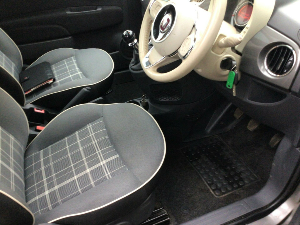 This 2017 Fiat 500 Lounge is a truly special find, having been cherished by just one owner from new and boasting a clear vehicle history check. Under the bonnet, you'll find an efficient 1.2 litre petrol engine that meets Euro 6 emissions standards, making it a sensible choice. Inside, the Lounge trim offers comfort and convenience with front seats featuring a memory function, perfect for quickly finding your ideal driving position. Enjoy the light and airy cabin with the fixed glass roof and its integrated sunblind, while the 5 inch touchscreen radio provides entertainment with AUX, USB, DAB, and Bluetooth connectivity. Manoeuvring is made easier thanks to the rear parking sensors, and you can stay comfortable in all conditions with the air conditioning.This Fiat 500 Lounge stands out from others thanks to its economical running costs. Its low CO2 emissions mean it's kinder to the environment, and it also falls into a low insurance group, which can help to keep your running expenses down. These factors, combined with its single owner provenance and desirable features, make this particular Fiat 500 a very attractive proposition for anyone seeking a stylish and practical city car., oth - black-light grey-ivory with ivory ambience, 12v socket - front, 15in alloy wheels, 50-50 split folding rear seat with height adjustable head restraints, 5in touchscreen radio with aux - usb - dab - bluetooth, 7 airbags, abs with ebd, air conditioning, automatic door locking, body coloured bumpers, chrome kit, chrome plated exterior door handles, dualdrive power steering, esc - electronic stability control, electric front windows, electrically adjustable painted door mirrors, fix and go puncture repair kit, fixed glass roof with sunblind, fog lights, front seats with memory function, fuel cap with tap, gsi - gear shift indicator, hazard light automatic activation during emergency braking, heat reflective windows, heated rear window, height adjustable drivers seat, height adjustable front head restraints, isofix attachment points for child safety seat on rear seat, instrument panel with rev counter, led daytime running lights, rear parking sensors, rear window wiper-washer, remote central locking, seats-back pockets, steering wheel - height adjustment, steering wheel - leather with audio controls, tpms - tyre pressure monitoring system, trip computer