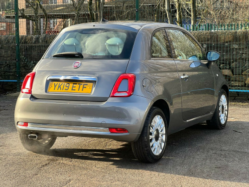 A stylish and well-maintained 2019 (19) Fiat 500 1.2 Lounge finished in sleek grey with only 51,000 miles and 2 owners. Powered by the reliable 1.2-litre Euro 6 petrol engine, this car is fully ULEZ compliant, cheap to run, low insurance and perfect for city driving. The Lounge model offers a premium feel with iconic looks and modern tech.1.2-litre Euro 6 petrol (ULEZ compliant)5-speed manual gearboxPanoramic glass roof15'' alloy wheelsChrome exterior detailingLED daytime running lightsRear parking sensorsTouchscreen infotainment displayBluetooth, USB & DAB radioLeather multifunction steering wheelAir conditioningCruise control & speed limiterStart/Stop technologySplit-folding rear seatsTyre pressure monitoringCity steering mode (extra-lABS & Electronic Stability ControlHill Start AssistRear parking sensorsMultiple airbagsISOFIX child seat mounts***EXTENDED WARRANTY AVAILABLE****DUE TO HIGH DEMAND WE RECOMMEND A VIEWING IN ADVANCE, which you can do via the website or by calling us at +44 7349 390791.Our friendly team will look after you before, during and after the sales. We will help you with taxing the vehicle, completing official forms, and we will make sure that you, your family and loved ones are safe on the road. We also offer a wide range of warranties and finance to meet your needs. WHO WE AREWe are a car dealership with 16 years of experience, based in Clarence Street, Stalybridge, SK15 1QF. We are 100% sure that we can find you the right vehicle as we offer over 150 cars for sale at any time. OUR QUALITY PROMISE- Every car comes with our FREE 3 Months warranty- We offer a fresh MOT for all vehicles due for one within the next 3 months. - All our vehicles are HPI Clear and undergo a 39-Point check, conducted by professional inspectors. - Every vehicle is valeted and sanitised to a high standard. - We are able to offer delivery nationwide at competitive prices, don't hesitate to contact us for a quote.FINANCE, PART EXCHANGE OR A STRAIGHT PURCHASE IS AVAILABLE. QPX Wheels Team.https://qpxwheels.co.uk/ xed glass roof with sunblind, cloth - black-light grey-ivory with ivory ambience, 12v point, 15in alloy wheels, 50-50 split folding rear seat with height adjustable head restraints, 5in touchscreen radio with aux - usb - dab - bluetooth, abs with ebd, air conditioning, automatic door locking, body coloured bumpers, chrome kit, chrome plated exterior door handles, cruise control, driver and passenger airbag with dual stage system, drivers knee airbag, dualdrive power steering, esc - electronic stability control, electric front windows, electrically adjustable painted door mirrors with defrosting and external temperature sensor, fix and go puncture repair kit, fog lights, front seat belts with pretensioners - load limiter and fastening sensor, front seats with memory function, hazard light automatic activation during emergency braking, heat reflective windows, heated rear window, height adjustable drivers seat, height adjustable front head restraints, isofix attachment points for child safety seat on rear seat, instrument panel with rev counter, led daytime running lights, rear parking sensors, rear window wiper-washer, remote central locking, seats-back pockets, side airbags, speed limiter, steering wheel - height adjustment, steering wheel - leather with audio controls, tpms - tyre pressure monitoring system, window airbags, 7 airbags, 7in hd touchscreen radio with bluetooth - usb and dab, apple carplay - android auto connectivity, rack and pinion with electric power steering, technoleather steering wheel with audio controls