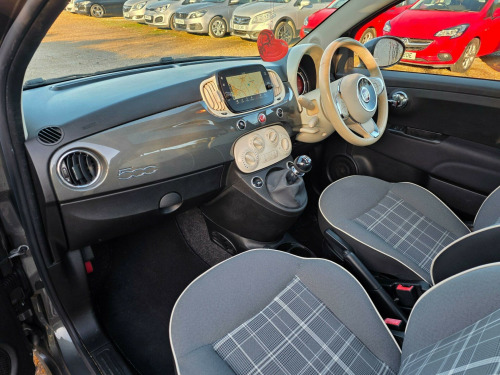 This 2018 Fiat 500 Lounge boasts a full service history and a clear vehicle history check, offering peace of mind for its next owner. Powered by an efficient 1.2L Euro 6 petrol engine, this model is known for its low CO2 emissions and falls into a low insurance group, making it an economical choice. Inside, you'll find a 7in HD touchscreen with 3D navigation, Bluetooth, USB, Aux in, and DAB radio, complemented by a 7in TFT instrument cluster. For added convenience, it features rear parking sensors and a fixed glass roof with a sunblind.The Fiat 500 Lounge is designed to be a practical and enjoyable car. These features, combined with its fuel efficiency and low running costs, demonstrate how this particular Fiat 500 offers a superior ownership experience compared to other vehicles in its class. The MOT is valid until December 2026, adding to its appeal as a well maintained and ready to go vehicle. v point, 15in alloy wheels, 50-50 split folding rear seat with height adjustable head restraints, 5in touchscreen radio with aux - usb - dab - bluetooth, 7 airbags, abs with ebd, air conditioning, automatic door locking, body coloured bumpers, chrome kit, chrome plated exterior door handles, cruise control, driver and passenger airbag with dual stage system, drivers knee airbag, dualdrive power steering, electric front windows, electrically adjustable painted door mirrors, electrically adjustable painted door mirrors with defrosting and external temperature sensor, esc - electronic stability control, fix and go puncture repair kit, fixed glass roof with sunblind, fog lights, front seat belts with pretensioners - load limiter and fastening sensor, front seats with memory function, gsi - gear shift indicator, hazard light automatic activation during emergency braking, heat reflective windows, heated rear window, height adjustable drivers seat, height adjustable front head restraints, instrument panel with rev counter, isofix attachment points for child safety seat on rear seat, led daytime running lights, rear parking sensors, rear window wiper-washer, remote central locking, seats-back pockets, side airbags, speed limiter, steering wheel - height adjustment, steering wheel - leather with audio controls, tpms - tyre pressure monitoring system, trip computer, window airbags, 7in hd touchscreen radio with 3d navigation - bluetooth - usb-aux-in and dab, 7in tft instrument cluster, cloth - black-light grey-ivory with ivory ambience