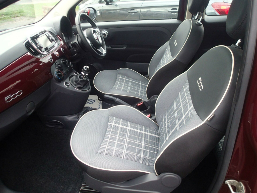 This 2016 Fiat 500 Lounge boasts exceptionally low mileage for its age, having covered just 48,517 miles, and comes with a clear vehicle history check. This stylish city car is powered by an efficient 1.2L Euro 6 petrol engine, making it a great choice for urban driving. Inside, you'll find a comfortable cabin featuring front seats with a memory function, perfect for quickly adjusting to your preferred driving position. Entertainment and connectivity are well catered for with a 5in touchscreen radio offering DAB, Bluetooth, AUX, and USB inputs. For added convenience and comfort, this Lounge model includes air conditioning and a fixed glass roof with a sunblind, allowing you to enjoy the open sky.The Fiat 500 Lounge stands out with its impressive fuel economy, achieving an excellent 60 mpg, which indicates it is more economical than many similar vehicles. Furthermore, its low insurance group rating suggests that running costs will be kept to a minimum, making it an affordable option. The vehicle also benefits from low CO2 emissions, highlighting its environmental consideration compared to other cars in its class. To aid with parking, rear parking sensors are fitted, providing an extra layer of confidence when manoeuvring in tight spaces., v socket - front, 15in alloy wheels, 50-50 split folding rear seat with height adjustable head restraints, 5in touchscreen radio with aux - usb - dab - bluetooth, 7 airbags, abs with ebd, air conditioning, automatic door locking, body coloured bumpers, chrome kit, chrome plated exterior door handles, dualdrive power steering, esc - electronic stability control, electric front windows, electrically adjustable painted door mirrors, fix and go puncture repair kit, fixed glass roof with sunblind, fog lights, front seats with memory function, fuel cap with tap, gsi - gear shift indicator, hazard light automatic activation during emergency braking, heat reflective windows, heated rear window, height adjustable drivers seat, height adjustable front head restraints, isofix attachment points for child safety seat on rear seat, instrument panel with rev counter, led daytime running lights, rear parking sensors, rear window wiper-washer, remote central locking, seats-back pockets, steering wheel - height adjustment, steering wheel - leather with audio controls, tpms - tyre pressure monitoring system, trip computer, space saver spare wheel, cloth - black-light grey-ivory with black ambience