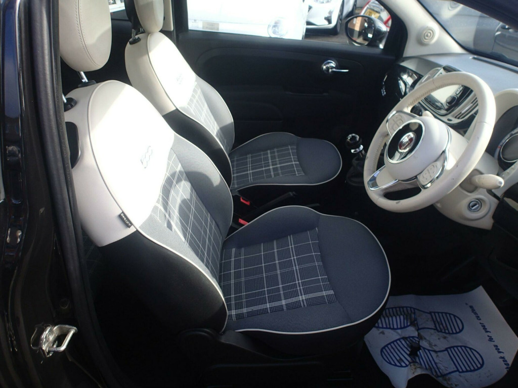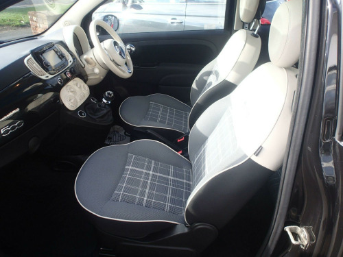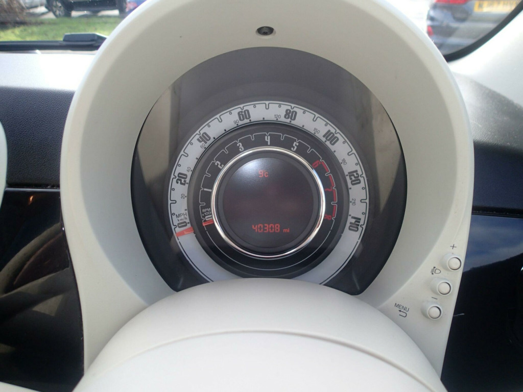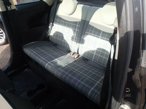 This 2018 Fiat 500 Lounge boasts exceptionally low mileage for its age, having covered just 40036 miles, and comes with a clear vehicle history check. This stylish city car is powered by an efficient 1.2L Euro 6 petrol engine, making it a sensible choice for urban driving. Inside, you'll find comfortable front seats with a memory function, a 5 inch touchscreen radio offering AUX, USB, DAB, and Bluetooth connectivity, and air conditioning to keep you comfortable. Practicality is enhanced with rear parking sensors, and the fixed glass roof with a sunblind floods the cabin with light.The Fiat 500 Lounge stands out with its low insurance group, suggesting more affordable ownership. Furthermore, its low CO2 emissions indicate a more environmentally conscious performance compared to many other vehicles. These factors, combined with its well maintained condition and desirable features, make this particular Fiat 500 a compelling option for those seeking a chic and economical car., in alloy wheels, 50-50 split folding rear seat with height adjustable head restraints, 5in touchscreen radio with aux - usb - dab - bluetooth, 7 airbags, abs with ebd, air conditioning, automatic door locking, body coloured bumpers, chrome kit, chrome plated exterior door handles, cruise control, driver and passenger airbag with dual stage system, dualdrive power steering, esc - electronic stability control, electric front windows, electrically adjustable painted door mirrors, fix and go puncture repair kit, fixed glass roof with sunblind, fog lights, front seats with memory function, gsi - gear shift indicator, hazard light automatic activation during emergency braking, heat reflective windows, heated rear window, height adjustable drivers seat, height adjustable front head restraints, isofix attachment points for child safety seat on rear seat, instrument panel with rev counter, led daytime running lights, rear parking sensors, rear window wiper-washer, remote central locking, seats-back pockets, speed limiter, steering wheel - height adjustment, steering wheel - leather with audio controls, tpms - tyre pressure monitoring system, trip computer, cloth - black-light grey-ivory with ivory ambience