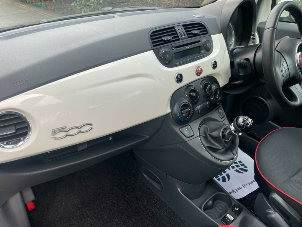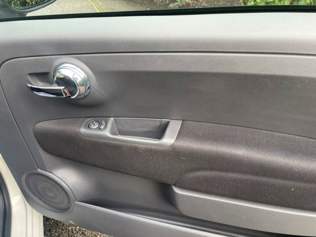 This 2015 Fiat 500 Lounge is a truly exceptional find, boasting incredibly low mileage of just 25,000 miles from its single owner. This stylish city car features a 1.2L petrol engine and meets Euro 6 emission standards. It comes equipped with a distinctive Italian flag side stripe, a fixed glass roof with a sunblind for an open feel, and the convenient Blue&Me system, which includes a hands free system with a USB port and Bluetooth connectivity, along with a predisposition for TomTom navigation. Air conditioning is also included to ensure your comfort on every journey.The appeal of this Fiat 500 Lounge is further enhanced by several key highlights that set it apart. Its remarkably low mileage for a 2015 vehicle indicates it has been gently used and well cared for. The low insurance group rating means running costs are kept down, making it an economical choice. Furthermore, its impressive fuel economy of 60 mpg and low CO2 emissions demonstrate its efficiency and environmental consideration, offering a more cost effective and greener way to travel compared to many other vehicles in its class. in alloy wheels - 431, abs - anti-lock braking system, air conditioning, airbags - driver, airbags - front side, airbags - passenger, blue&me - hands free system with usb port, body coloured bumpers, body coloured door mirrors, bumpers - chrome inserts, chrome exhaust tailpipe, chrome kit, chrome window contours, door handles - chrome, drivers knee airbag, ebd - electronic brakeforce distribution, electric front windows, electrically adjustable heated door mirrors, exterior temperature sensor, fixed glass roof with sunblind, head restraints - front height adjustment, headlights - height adjustable, heated rear window, height adjustable drivers seat, isofix child seat attachments, lounge interior trim, passenger seat with under seat compartment, pollen filter, power steering - dualdrive electric, radio-cd and mp3 player, remote central locking, seats - 50-50 split folding rear, seats - passengers back pocket, space saver spare wheel, steering wheel - height adjustment, steering wheel - leather with audio controls, steering wheel audio controls, sunvisor - drivers with mirror, sunvisor - passenger with light and mirror, usb port, window airbags, side stripe - italian flag, blue&me - predisposition for tomtom, cloth - grey with red logo and black ambience