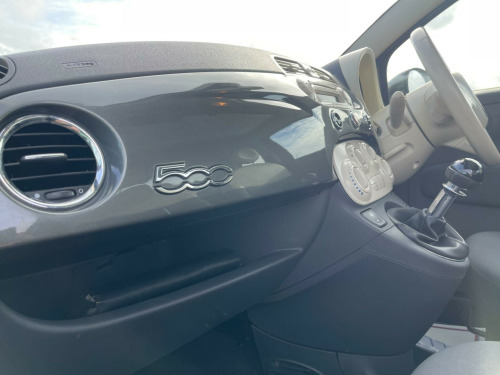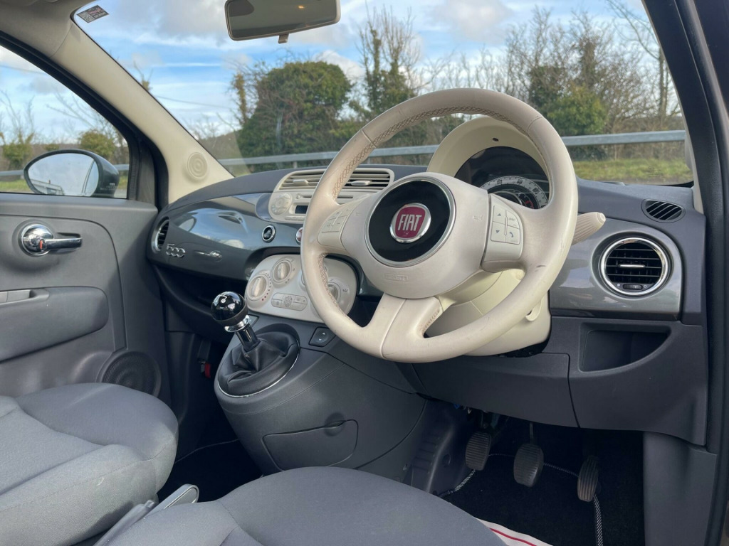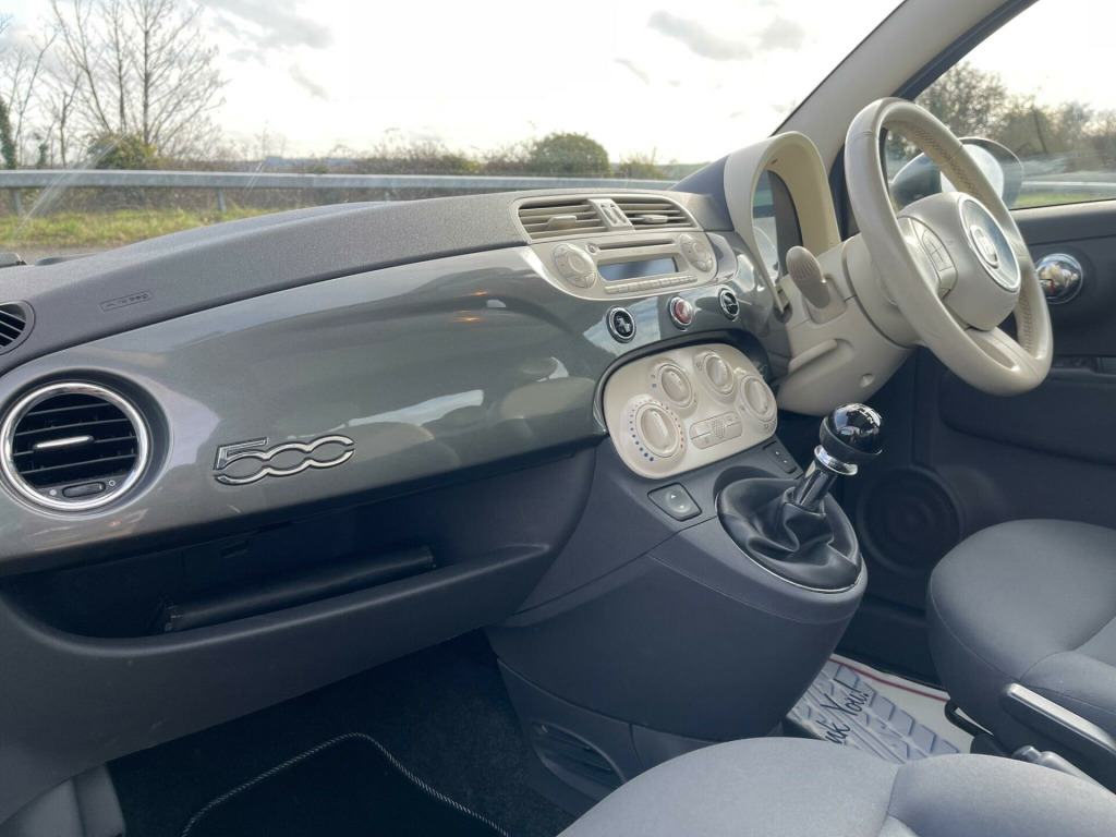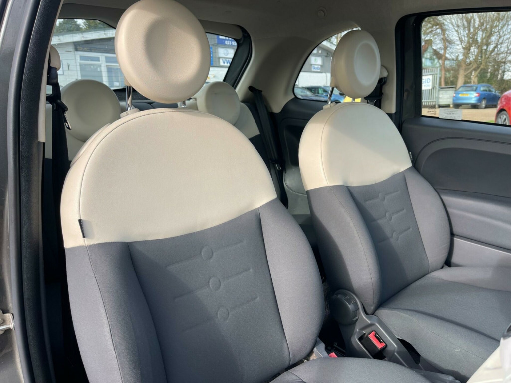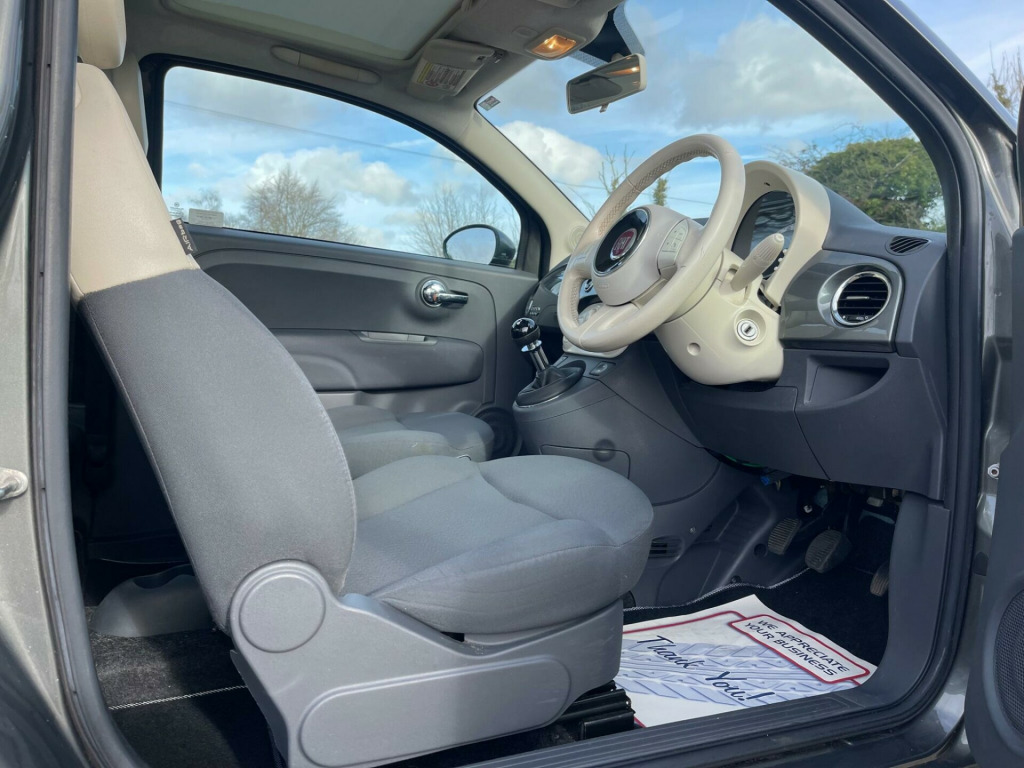 GREAT VALUE FIAT 500. Presented in Adrenalin Grey metallic with only 49k miles, service history including a fresh service just performed and MOT through to February 2027. Lounge model with 15'' alloy wheels, panoramic glass roof, air conditioning, stop/start and Bluetooth connection. Perfect starter car or low cost commuter. Serviced at 4k miles, 10k miles, 15k miles, 26k miles, 31k miles, 38k miles including cambelt and water pump, 49k miles prior to collection. Part exchange welcome. HPI clear. Minimum 3 month warranty with up to 24 months available, inspections welcome. Highly rated for customer service by AutoTrader. Please call ahead to confirm availability and to avoid disappointment. Visit our website for finance options and online applications., oth - dark grey with ivory ambience, 15in alloy wheels - 431, abs - anti-lock braking system, air conditioning, airbags - driver, airbags - front side, airbags - passenger, blue&me - hands free system with usb port, body coloured bumpers, body coloured door mirrors, bumpers - chrome inserts, chrome exhaust tailpipe, chrome kit, chrome window contours, door handles - chrome, drivers knee airbag, ebd - electronic brakeforce distribution, electric front windows, electrically adjustable heated door mirrors, exterior temperature sensor, fixed glass roof with sunblind, head restraints - front height adjustment, headlights - height adjustable, heated rear window, height adjustable drivers seat, isofix child seat attachments, lounge interior trim, passenger seat with under seat compartment, pollen filter, power steering - dualdrive electric, radio-cd and mp3 player, remote central locking, seats - 50-50 split folding rear, seats - passengers back pocket, space saver spare wheel, steering wheel - height adjustment, steering wheel - leather with audio controls, steering wheel audio controls, sunvisor - drivers with mirror, sunvisor - passenger with light and mirror, usb port, window airbags