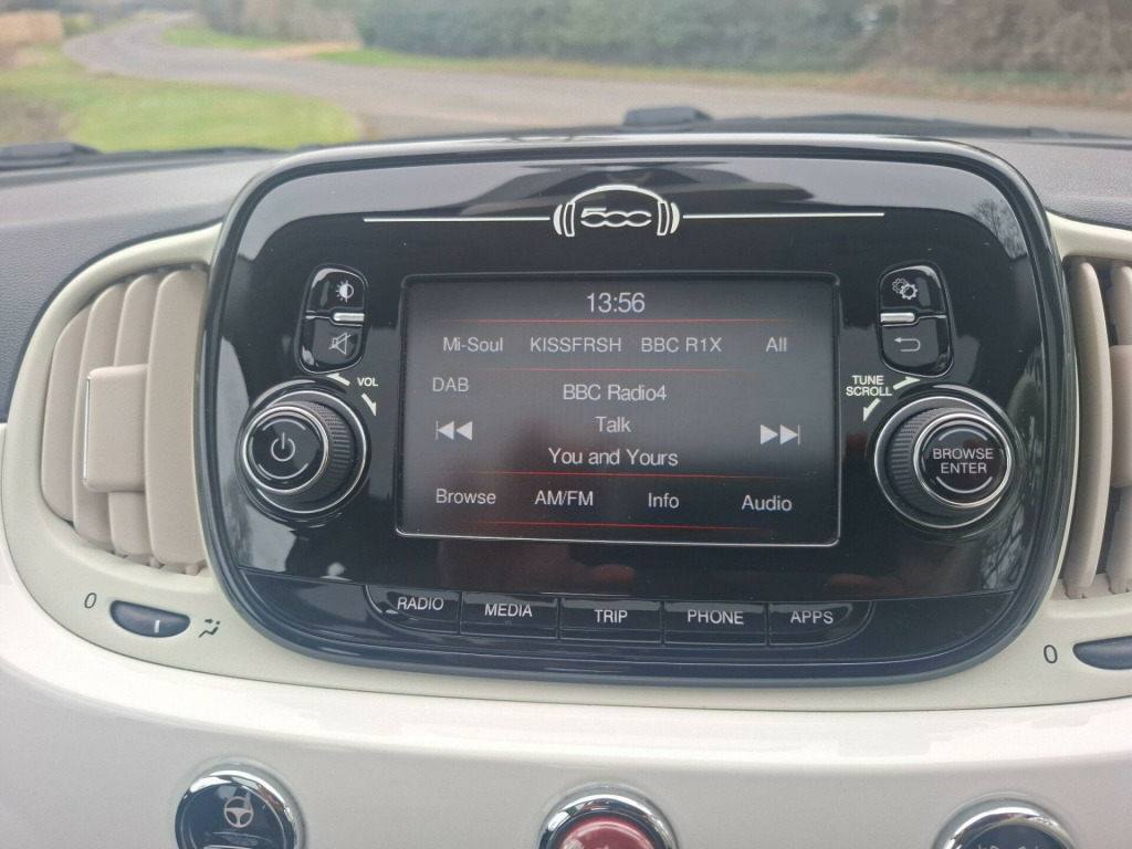 We are delighted to present for sale This 2018 Fiat 500 Lounge which boasts exceptionally low mileage for its age, having covered just 12,900 miles. This stylish city car is powered by an efficient 1.2L Euro 6 petrol engine and comes with a 12 month MOT provided and a FREE service on purchase, offering peace of mind. Its partial service history due only to the fact it's low Milage includes a last service at 10,957 miles on 28 February 2025. Inside, you'll find a comfortable cabin featuring a fixed glass roof with a sunblind, air conditioning, and a 5in touchscreen radio with AUX, USB, DAB, and Bluetooth connectivity. rear parking sensors are included for added convenience.The Fiat 500 Lounge stands out with its low insurance group and low CO2 emissions, indicating it is more economical to run than many similar vehicles. This makes it an attractive choice for drivers looking for affordability and efficiency. Its compact size and user friendly features, such as the rear parking sensors and intuitive touchscreen, make it ideal for navigating urban environments with ease.Finance is available at very competitive rates, we also take in part exchange and pride ourselves in offering the best price for your vehicle.For further information or to book a test drive please call Dan or Sarah on 01622890933, who will be happy to look after you. oth - black-light grey-ivory with ivory ambience, 15in alloy wheels, 50-50 split folding rear seat with height adjustable head restraints, 5in touchscreen radio with aux - usb - dab - bluetooth, 7 airbags, abs with ebd, air conditioning, automatic door locking, body coloured bumpers, chrome kit, chrome plated exterior door handles, cruise control, driver and passenger airbag with dual stage system, dualdrive power steering, esc - electronic stability control, electric front windows, electrically adjustable painted door mirrors, fix and go puncture repair kit, fixed glass roof with sunblind, fog lights, front seats with memory function, gsi - gear shift indicator, hazard light automatic activation during emergency braking, heat reflective windows, heated rear window, height adjustable drivers seat, height adjustable front head restraints, isofix attachment points for child safety seat on rear seat, instrument panel with rev counter, led daytime running lights, rear parking sensors, rear window wiper-washer, remote central locking, seats-back pockets, speed limiter, steering wheel - height adjustment, steering wheel - leather with audio controls, tpms - tyre pressure monitoring system, trip computer