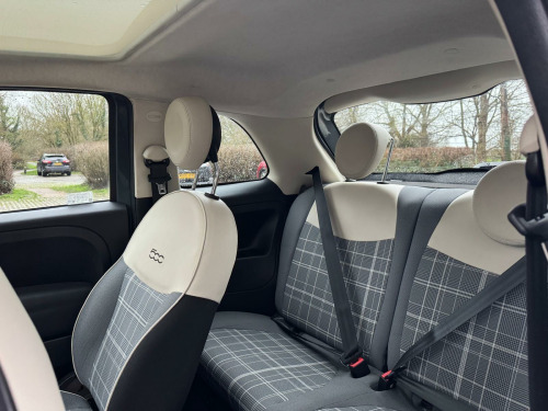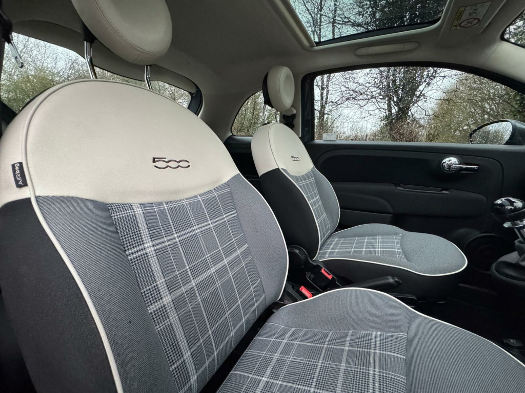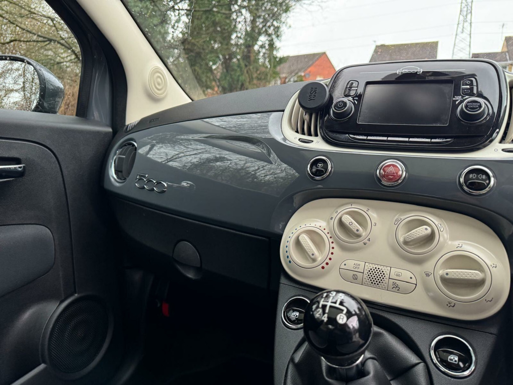 This 2018 Fiat 500 Lounge is a fantastic choice for those seeking a stylish and economical city car. Powered by a 1.2 litre Euro 6 petrol engine, this model offers a smooth driving experience perfect for navigating urban streets. The Lounge trim comes well equipped, featuring a 5 inch touchscreen radio with AUX, USB, DAB, and Bluetooth connectivity, allowing you to enjoy your favourite music and stay connected on the go. Comfort is also a priority, with air conditioning to keep you cool and front seats that include a memory function for personalised seating positions.Further enhancing your driving experience, this Fiat 500 includes rear parking sensors to assist with manoeuvring into tight spots and a fixed glass roof with a sunblind, bathing the cabin in natural light. This particular model benefits from a low insurance group, making it an affordable option for many drivers. Additionally, its low CO2 emissions indicate a more environmentally conscious choice compared to many other vehicles in its class. oth - black-light grey-ivory with ivory ambience, 12v point, 15in alloy wheels, 50-50 split folding rear seat with height adjustable head restraints, 5in touchscreen radio with aux - usb - dab - bluetooth, abs with ebd, air conditioning, automatic door locking, body coloured bumpers, chrome kit, chrome plated exterior door handles, cruise control, driver and passenger airbag with dual stage system, drivers knee airbag, dualdrive power steering, esc - electronic stability control, electric front windows, electrically adjustable painted door mirrors with defrosting and external temperature sensor, fix and go puncture repair kit, fixed glass roof with sunblind, fog lights, front seat belts with pretensioners - load limiter and fastening sensor, front seats with memory function, hazard light automatic activation during emergency braking, heat reflective windows, heated rear window, height adjustable drivers seat, height adjustable front head restraints, isofix attachment points for child safety seat on rear seat, instrument panel with rev counter, led daytime running lights, rear parking sensors, rear window wiper-washer, remote central locking, seats-back pockets, side airbags, speed limiter, steering wheel - height adjustment, steering wheel - leather with audio controls, tpms - tyre pressure monitoring system, window airbags