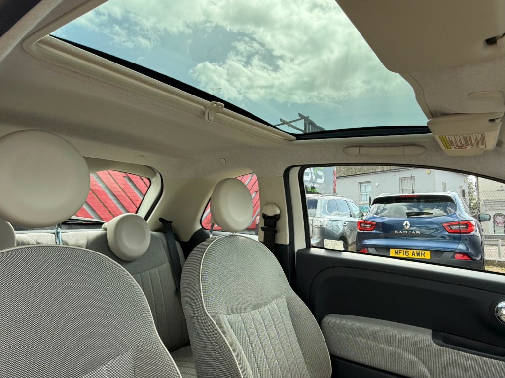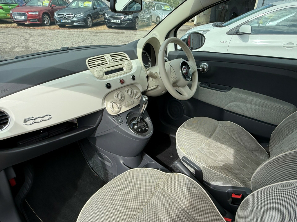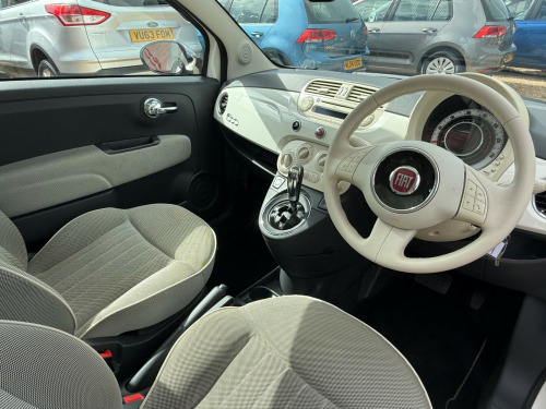 Sussex Vehicle Solutions Ltd are delighted to present this Fiat 500 1.2 Lounge Hatchback 3dr Petrol Dualogic. Please see the specification below. This Fiat 500 will be sold with a minimum of 6 months MOT and 3 months warranty, extendable to 12 months. Sussex Vehicle Solutions is a family run business who pride themselves on giving excellent customer service in a pressure-free environment. If you have any questions, please do not hesitate to get in touch. in 18spoke alloy wheels, 15in alloy wheels, body colour door mirrors, fixed glass sunroof with sunblind, air conditioning, black ambience, ivory ambience