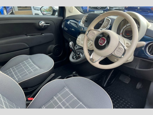 With an exceptionally low mileage of just 12750 miles for its 2019 registration, this Fiat 500 Lounge presents a remarkable find. Powered by an efficient 1.2L Euro 6 petrol engine, this compact car is designed for urban driving and beyond. Its provenance is further assured with a clear vehicle history check and an MOT valid until September 2026, offering peace of mind for its next owner. Inside, you'll discover a stylish interior featuring Fabric upholstery in Black, Light Grey, and Ivory with a matching Ivory Ambience. This Fiat 500 Lounge is equipped with a host of modern conveniences to enhance your driving experience. Stay connected and entertained with Apple CarPlay and Android Auto connectivity, seamlessly integrating your smartphone with the 7in HD touchscreen radio, which also includes Bluetooth, USB, and DAB capabilities. Parking is made easier with rear parking sensors, and the front seats offer a memory function for personalised comfort. The low CO2 emissions and its position within a low insurance group highlight how this vehicle offers a more economical and accessible ownership proposition compared to many others in its class. 15in Alloy Wheels, 50-50 Split Folding Rear Seat with Heigh, 7 Airbags, 7in HD Touchscreen Radio with Bluetooth , ABS with EBD, Air Conditioning, Apple CarPlay - Android Auto Connectivit, Automatic Door Locking, Body Coloured Bumpers, Chrome Kit, Chrome Plated Exterior Door Handles, Cruise Control, Electric Front Windows, Electrically Adjustable Painted Door Mir, Epic Blue, ESC - Electronic Stability Control, Fabric - Black-Light Grey-Ivory with Ivo, Fix and Go Puncture Repair Kit, Fog Lights, Front Seats with Memory Function, Height Adjustable Drivers Seat, LED Daytime Running Lights, Rack and Pinion with Electric Power Stee, Rear Parking Sensors, Remote Central Locking, Speed Limiter, Stee