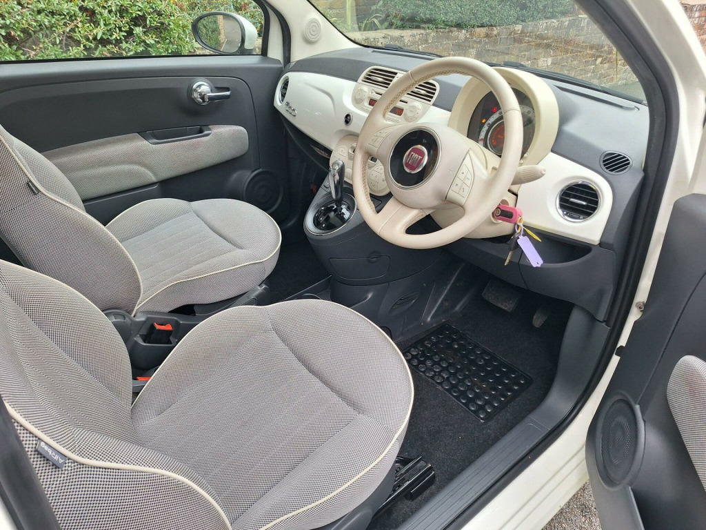 12 months mot WE DO DELIVERY 2 key just been service done brake pads and discs. Front sock. to climate control, body colour side rubbing strips with 500 logo, 15in 18spoke alloy wheels, 15in alloy wheels, air conditioning, black ambience, body colour door mirrors, fixed glass sunroof with sunblind, ivory ambience