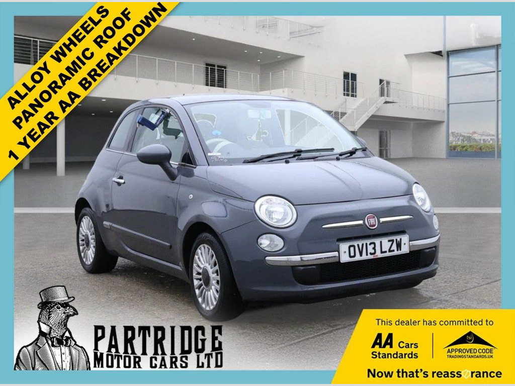 HPI CLEAR, SUPPLIED WITH NEW MOT, SUPPLIED WITH NEW SERVICE, ALLOY WHEELS, PANORAMIC ROOF, ELECTRIC WINDOWS, RADIO CD PLAYER, CHEAP INSURANCE, 3 DOOR, MANUAL, 3 MONTHS WARRANTY, 1 YEAR AA BREAKDOWN, AA DEALER **2013 Fiat 500 1.2 Lounge: Pan Roof, £35 Tax, New MOT & Service! AA Approved!** ******** The ultimate stylish city car and the perfect choice for a first-time driver! This is the iconic 2013 Fiat 500 in the sought-after, top-tier 'Lounge' specification. Finished in a sophisticated Breakbeat Grey metallic, this car radiates Italian charm. The Lounge trim elevates the 500 with luxury features, most notably a stunning **Panoramic Glass Roof**. It's also fantastically affordable to run, costing only **£35 a year in road tax** and sitting in a very low insurance group. ******** **Key Features:** *** **1.2L Petrol Engine**: A brilliantly economical and reliable engine that's famously cheap to run and insure. *** **'Lounge' Specification**: The highest trim level for the Fiat 500, focused on comfort, style, and luxury. *** **Panoramic Glass Roof**: The signature feature of the Lounge trim, this fixed glass roof with a sunblind adds a real touch of class. *** **£35 Annual Road Tax**: Incredibly cheap to tax, saving you money every year. *** **Bluetooth Connectivity**: The 'Blue&Me' system allows for safe, hands-free phone calls and media control. *** **Air Conditioning**: Keeps the stylish retro cabin cool 15in 18Spoke Alloy Wheels, 15in Alloy Wheels, Air Conditioning, Black ambience, Body colour door mirrors, Breakbeat Grey, Fixed Glass Sunroof with sunblind, Ivory ambience