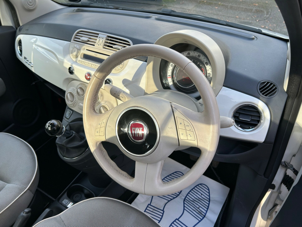 Just arrived is this superb little Fiat 500 1.2 Lounge finished in White with contrasting grey cloth interior and moon sunroof. The car has just had 2 new front tyres, new exhaust system, service and a new 12 month mot. Any test trial or inspection is welcome, all major Credit / Debit cards accepted, the full specification is as follows in alloy wheels, body colour door mirrors, chrome kit, electric front windows, electrically adjustable heated door mirrors, fixed glass roof with sunblind, fixed glass sunroof with sunblind, space saver spare wheel, abs - anti-lock braking system, airbags - driver, airbags - front side, airbags - passenger, drivers knee airbag, ebd - electronic brakeforce distribution, isofix child seat attachments, remote central locking, window airbags, air conditioning, black ambience, ivory ambience, lounge interior trim, split folding 50:50 rear seat, steering wheel - height adjustment, steering wheel - leather with audio controls, blue&me - hands free system with usb port, radio-cd and mp3 player, power steering - dualdrive electric
