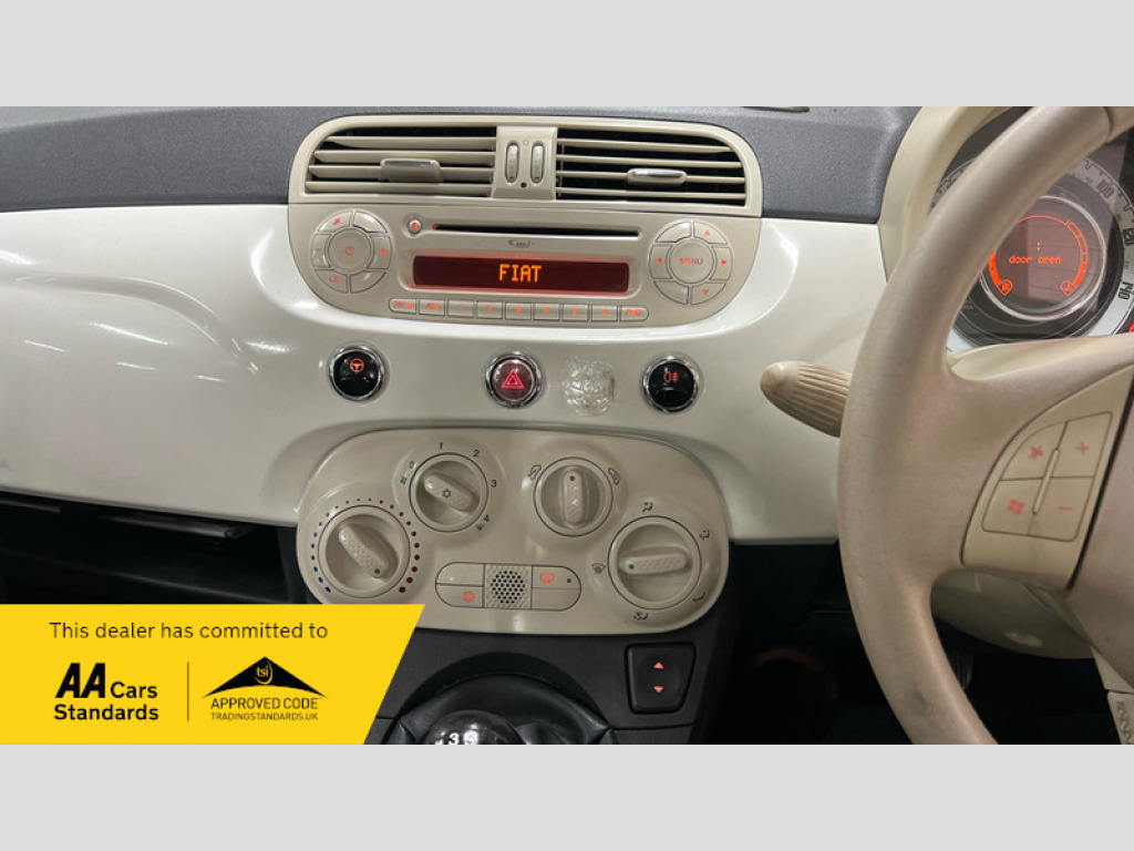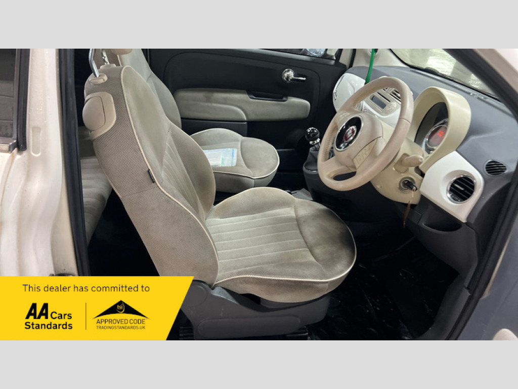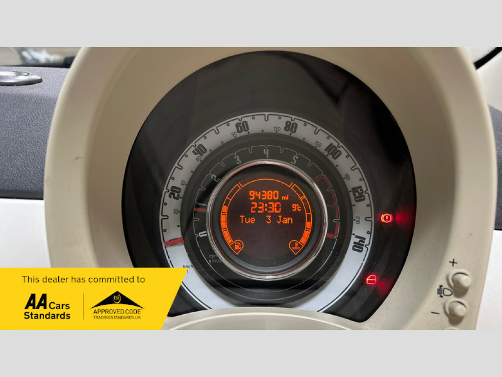 FIAT 500 1.2 LOUNGE S/S Hatchback DVSA MILEAGE-34k (22/09/2014), 47k (23/11/2015), 52k (10/10/2016), 60k (28/10/2017), 67k (15/10/2018), 69k (30/10/2019), 72k (04/11/2020), 75k (09/11/2021), 79k (14/11/2022), 84k (17/10/2023), 88k (31/10/2024), 93k (17/11/2025). Alloy Wheels Steel Spare Wheel Panoramic Roof 15in Alloy Wheels, ABS, Air Conditioning, Brake Assist, Central Locking, Electric Windows, Front Airbags, Side Impact Airbags, Spare Wheel