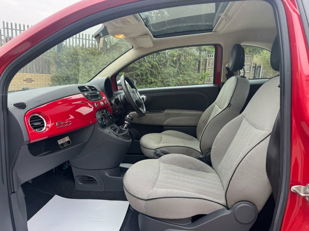 2010 10 FIAT 500 LOUNGE 1.25 3 DOOR* JUNE 2026 MOT WITH NO ADVISORIES* SERVICE HISTORY WITH EIGHT STAMPS IN THE BOOK INC CAMBELT CHANGE AT 77K MILES* LOUNGE MODEL WITH PANORAMIC ROOF, ALLOY WHEELS, ELECTRIC WINDOWS, AIR CON AND REMOTE LOCKING FITTED* £35 ROAD TAX PER YEAR* DRIVES VERY NICELY* HPI CLEAR* LOW INSURANCE GROUP* IDEAL FIRST CAR* OFFERING ON BEHALF OF MY AUNT WHO HAS BEEN TOLD SHE CAN'T DRIVE ANY MORE* 15in Alloy Wheels, ABS - Anti-Lock Braking System, Air Conditioning, Airbags - Driver, Airbags - Front Side, Airbags - Passenger, Black ambience, Blue&Me - Hands Free System with USB, Body colour door mirrors, Chrome Kit, Drivers Knee Airbag, EBD - Electronic Brakeforce Distribution, Electric Front Windows, Electrically Adjustable Heated Door Mirr, Fixed Glass Roof with Sunblind, Fixed Glass Sunroof with sunblind, ISOFIX Child Seat Attachments, Ivory ambience, Lounge Interior Trim, Power Steering - Dualdrive Electric, Radio-CD and MP3 Player, Remote Central Locking, Space Saver Spare Wheel, Split Folding 50:50 Rear Seat, Steering Wheel - Height Adjustment, Steering Wheel - Leather with A