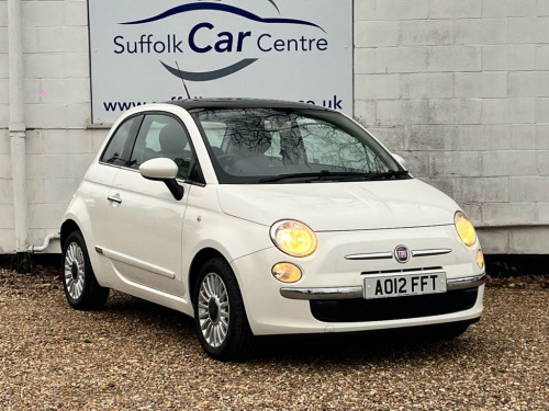 FIAT 500 1.2 Lounge Hatchback 3dr Petrol Manual Euro 6 (s/s) (69 bhp) Service History and 12 Months MOT 6 Months Blue Chip Warranty Road Side Assistance (Optional) Located at Lowestoft 15in Alloy Wheels, ABS - Anti-Lock Braking System, Air Conditioning, Airbags - Driver, Airbags - Front Side, Airbags - Passenger, Black ambience, Blue&Me - Hands Free System with USB, Body colour door mirrors, Chrome Kit, Drivers Knee Airbag, EBD - Electronic Brakeforce Distribution, Electric Front Windows, Electrically Adjustable Heated Door Mirr, Fixed Glass Roof with Sunblind, Fixed Glass Sunroof with sunblind, ISOFIX Child Seat Attachments, Ivory ambience, Lounge Interior Trim, Power Steering - Dualdrive Electric, Radio-CD and MP3 Player, Remote Central Locking, Space Saver Spare Wheel, Split Folding 50:50 Rear Seat, Steering Wheel - Height Adjustment, Steering Wheel - Leather with A