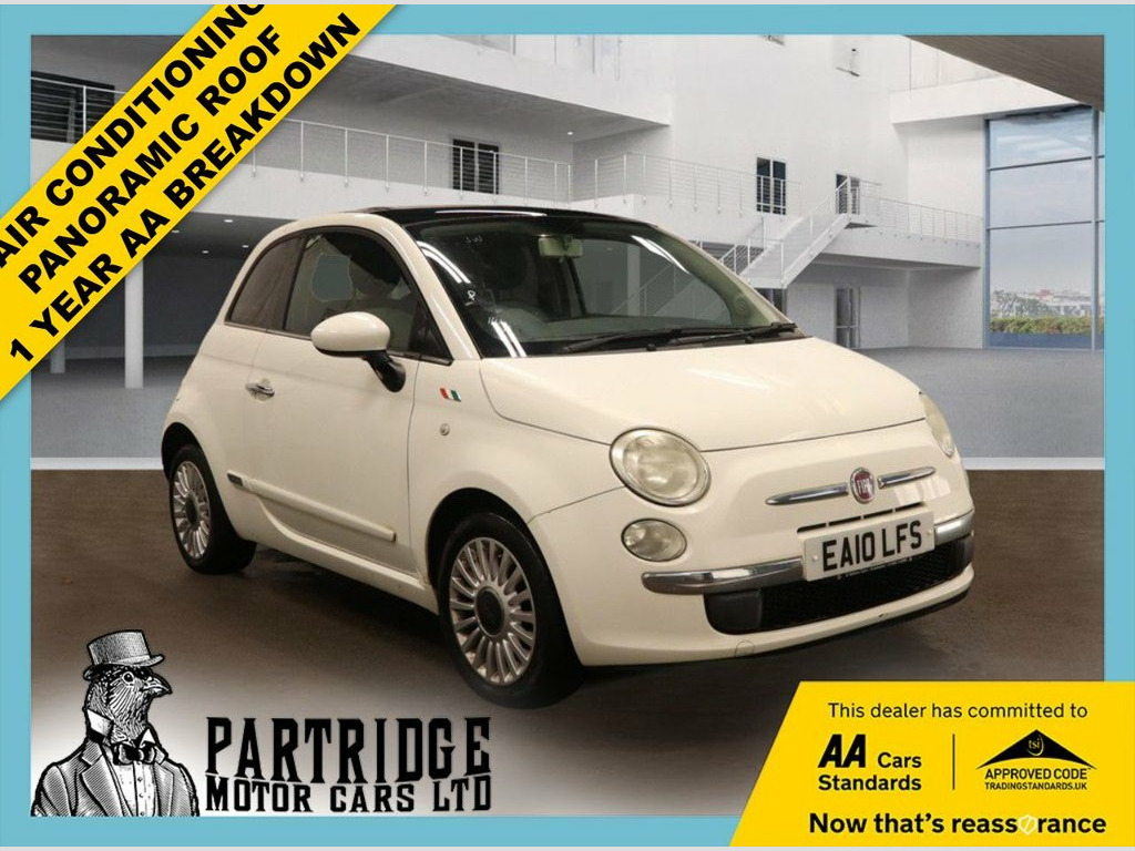 HPI CLEAR, SUPPLIED WITH NEW MOT, SUPPLIED WITH NEW SERVICE, AIR CONDITIONING, ALLOY WHEELS, PRIVACY GLASS, PANORAMIC ROOF, CHEAP INSURANCE, ELECTRIC WINDOWS, 3 DOOR, MANUAL, 3 MONTHS WARRANTY, 1 YEAR AA BREAKDOWN, AA DEALER **2010 Fiat 500 1.2 Lounge: Pan Roof, Privacy Glass, New MOT! AA Approved!** ******** The ultimate stylish city car and the perfect choice for a first-time driver! This is the iconic 2010 Fiat 500 in the sought-after, top-tier 'Lounge' specification. Finished in the classic Bossa Nova White, this car radiates Italian charm. The Lounge trim elevates the 500 with luxury features, most notably a stunning **Panoramic Glass Roof**. This example also benefits from stylish **Privacy Glass**, adding to its chic look. With its low insurance group and fun-to-drive nature, this car offers style and affordability in one perfect package. ******** **Key Features:** *** **1.2L Petrol Engine**: A brilliantly economical and reliable engine that's famously cheap to run and insure. *** **'Lounge' Specification**: The highest trim level for the Fiat 500, focused on comfort, style, and luxury. *** **Panoramic Glass Roof**: The signature feature of the Lounge trim, this fixed glass roof with a sunblind adds a real touch of class. *** **Privacy Glass**: A desirable feature that enhances the car's stylish appearance and keeps the cabin cool. *** **Bluetooth Connectivity**: The 'Blue&Me' system allows for safe, hands-free phone ca 15in Alloy Wheels, ABS - Anti-Lock Braking System, Air Conditioning, Airbags - Driver, Airbags - Front Side, Airbags - Passenger, Black ambience, Blue&Me - Hands Free System with USB, Body colour door mirrors, Bossanova White, Chrome Kit, Drivers Knee Airbag, EBD - Electronic Brakeforce Distribution, Electric Front Windows, Electrically Adjustable Heated Door Mirr, Fixed Glass Roof with Sunblind, Fixed Glass Sunroof with sunblind, ISOFIX Child Seat Attachments, Ivory ambience, Lounge Interior Trim, Power Steering - Dualdrive Electric, Radio-CD and MP3 Player, Remote Central Locking, Space Saver Spare Wheel, Split Folding 50:50 Rear Seat, Steering Wheel - Height Adjustment, Steering Wheel