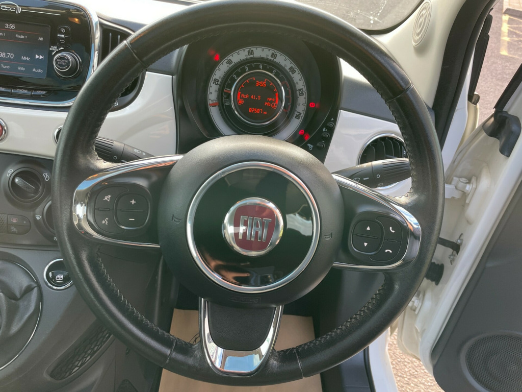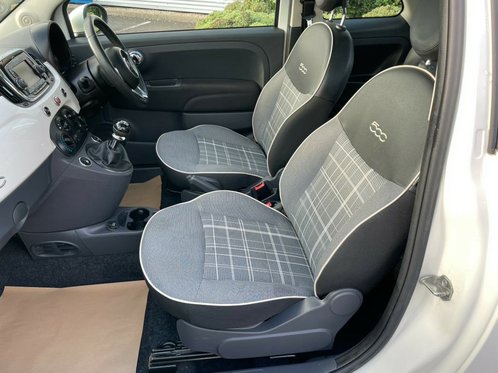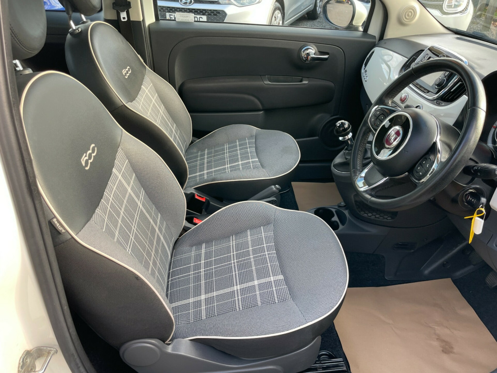 This 2016 Fiat 1.2 Lounge Hatchback is a stylish and practical vehicle with just 82584 miles on the clock. Powered by a petrol engine, it boasts a manual transmission and is Euro 6 compliant, ensuring it meets the latest emissions standards. With 4 seats and 3 doors, it's a compact yet spacious option, featuring a sleek Bossa Nova White exterior and 15-inch alloy wheels. The interior is finished in a striking Cloth - Black-Light Grey-Ivory with Black Ambience, adding a touch of luxury to the driving experience. In addition, this car comes with a space saver spare wheel, body coloured bumpers, and is ULEZ compliant, making it suitable for driving in low emissions zones. With its MOT valid until 27/03/2026, this Fiat 1.2 Lounge Hatchback is a reliable and efficient choice for any driver.,  in alloy wheels, body coloured bumpers, chrome kit, chrome plated exterior door handles, electric front windows, electrically adjustable painted door mirrors, fix and go puncture repair kit, fixed glass roof with sunblind, heat reflective windows, heated rear window, 50-50 split folding rear seat with height adjustable head restraints, air conditioning, front seats with memory function, height adjustable drivers seat, height adjustable front head restraints, instrument panel with rev counter, seats-back pockets, steering wheel - height adjustment, steering wheel - leather with audio controls, 5in touchscreen radio with aux - usb - dab - bluetooth, 7 airbags, abs with ebd, automatic door locking, driver and passenger airbag with dual stage system, esc - electronic stability control, hazard light automatic activation during emergency braking, isofix attachment points for child safety seat on rear seat, rear window wiper-washer, remote central locking, cruise control, dualdrive power steering, gsi - gear shift indicator, rear parking sensors, speed limiter, tpms - tyre pressure monitoring system, trip computer, fog lights, led daytime running lights