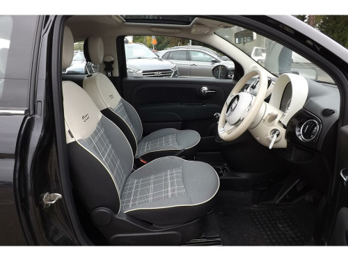 Here we have a very lovely Fiat 500 Lounge that has just arrived in part exchange. A great looking car in Crossover Black, it is just two ownerds from new with full service history, however we will still fully RAC check, service and MOT this car prior to delivery to its next discerning owner to ensure you the very best possible start. We will also post some better photos as soon as the car has been prepared & valeted, but please feel free to get in touch to arrange your viewing and test drive in the meantime. You can contact us via this website, or email us, or instant chat us anytime. You can also reserve this vehicle right now for just £99. You can fill out the finance application online anytime and get an immediate answer day or night. Part exchange's are always welcome and we guarantee to pay more the WBAC. UK wide, home delivery is always available, or you can ''click & collect'' if you prefer. Please do ring ahead if you are travelling to see this vehicle and we will take it off sale whilst you travel so you don't have a wasted journey. We have been selling quality New & Used vehicles for over 22 years with more than 13,0000 satisfied customers across the length and breadth of the UK. Please feel free to read our reviews and see what our lovely customers really think of us. If this is the car for you then we look forward to hearing from you and helping you achieve your Motoring goal. Should it not be quite what you are looking for then please get in touch and put us to the task of sourcing you your ideal vehicle, we have many contacts across the trade and can usually find a particular vehicle you require in a reasonable amount of time.. 12V Point, 5in Touchscreen Radio with AUX - USB - DAB - Bluetooth, Cruise Control, Rear Parking Sensors, TPMS - Tyre Pressure Monitoring System, 15in Alloy Wheels, Body Coloured Bumpers, Chrome Kit, Chrome Plated Exterior Door Handles, Electric Front Windows, Electrically Adjustable Painted Door Mirrors with Defrosting and External Temperature Sensor, Fix and Go Puncture Repair Kit, Fixed Glass Roof with Sunblind, Heat Reflective Windows, Heated Rear Window, Fog Lights, LED Daytime Running Lights, 50-50 Split Folding Rear Seat with Height Adjustable Head Restraints, Air Conditioning, Front Seats with Memory Function, Height Adjustable Drivers Seat, Height Adjustable Front Head Restraints, Instrument Panel with Rev Counter, Seats-back Pockets, Steering Wheel - Height Adjustment, Steering Wheel - Leather with Audio Controls, Dualdrive Power Steering, Speed Limiter, ABS with EBD, Automatic Door Locking, Driver and Passenger Airbag with Dual Stage System, Drivers Knee Airbag, ESC - Electronic Stability Control, Front Seat Belts with Pretensioners - Load Limiter And Fastening Sensor, Hazard Light Automatic Activation During Emergency Braking, ISOFIX Attachment Points for Child Safety Seat On Rear Seat, Rear Window Wiper-Washer, Remote Central Locking, Side Airbags, Window Airbags.