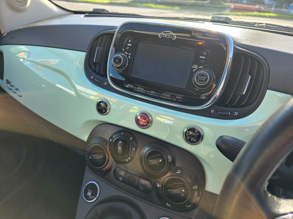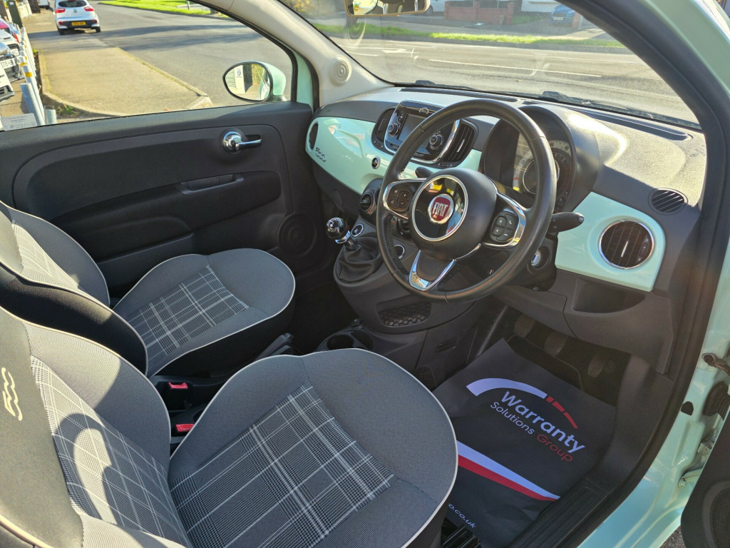 Prepared to the highest standard by our inhouse team, supplied with a 6 month award winning warranty with free breakdown cover. This 2017 Fiat 1.2 Lounge Hatchback 3dr Petrol Manual Euro 6 (s/s) (69 bhp) is a stylish and efficient vehicle with only 22663 miles on the clock. The hatchback body style makes it convenient for city driving, and with a petrol engine, it offers a smooth and responsive performance. The MOT expires on 24/09/2026, and it is ULEZ compliant, ensuring it meets the necessary emissions standards for urban areas. The car comfortably seats four people with three doors for easy access. The exterior features include 15in alloy wheels, body coloured bumpers, and a chrome kit for added style. Inside, the car boasts smooth mint cloth upholstery in black, light grey, and ivory with a black ambiance, adding a touch of luxury to the driving experience. This Fiat is a reliable and practical choice for anyone in the market for a well-maintained, ULEZ compliant hatchback. in alloy wheels, body coloured bumpers, chrome kit, chrome plated exterior door handles, electric front windows, electrically adjustable painted door mirrors, fix and go puncture repair kit, fixed glass roof with sunblind, heat reflective windows, heated rear window, 50-50 split folding rear seat with height adjustable head restraints, air conditioning, front seats with memory function, height adjustable drivers seat, height adjustable front head restraints, instrument panel with rev counter, seats-back pockets, steering wheel - height adjustment, steering wheel - leather with audio controls, 5in touchscreen radio with aux - usb - dab - bluetooth, 7 airbags, abs with ebd, automatic door locking, driver and passenger airbag with dual stage system, esc - electronic stability control, hazard light automatic activation during emergency braking, isofix attachment points for child safety seat on rear seat, rear window wiper-washer, remote central locking, cruise control, dualdrive power steering, gsi - gear shift indicator, rear parking sensors, speed limiter, tpms - tyre pressure monitoring system, trip computer, fog lights, led daytime running lights