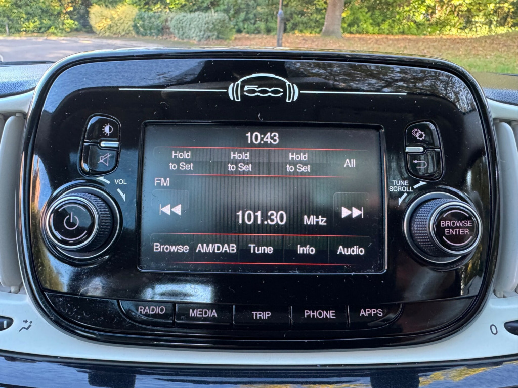 This stylish 2019 Fiat 1.2 Lounge Hatchback has only 41416 miles on the clock, and is a reliable petrol vehicle that is ULEZ compliant, making it perfect for city driving. With an MOT that expires on 13/08/2026, you can have peace of mind knowing it's roadworthy for years to come. This 3-door hatchback has 4 seats, making it spacious and practical for everyday use. The interior features luxurious Cloth in Black-Light Grey-Ivory with Ivory Ambience, along with a 5in Touchscreen Radio with AUX - USB - DAB - Bluetooth for entertainment and convenience. The stylish Crossover Black exterior is complemented by 15in Alloy Wheels, giving it a sleek and modern look. This Euro 6 (s/s) vehicle is a great choice for anyone looking for a reliable, eco-friendly car with a bit of flair., v point, 5in touchscreen radio with aux - usb - dab - bluetooth, 15in alloy wheels, body coloured bumpers, chrome kit, chrome plated exterior door handles, electric front windows, electrically adjustable painted door mirrors with defrosting and external temperature sensor, fix and go puncture repair kit, fixed glass roof with sunblind, heat reflective windows, heated rear window, 50-50 split folding rear seat with height adjustable head restraints, air conditioning, front seats with memory function, height adjustable drivers seat, height adjustable front head restraints, instrument panel with rev counter, seats-back pockets, steering wheel - height adjustment, steering wheel - leather with audio controls, abs with ebd, automatic door locking, driver and passenger airbag with dual stage system, drivers knee airbag, esc - electronic stability control, front seat belts with pretensioners - load limiter and fastening sensor, hazard light automatic activation during emergency braking, isofix attachment points for child safety seat on rear seat, rear window wiper-washer, remote central locking, side airbags, window airbags, cruise control, dualdrive power steering, rear parking sensors, speed limiter, tpms - tyre pressure monitoring system, fog lights, led daytime running lights, 6 months rac warranty, free delivery service up to 100 miles., free service, hand books, ideal first car., never been smoked in, no admin fees, part exchange a pleasure., two keys