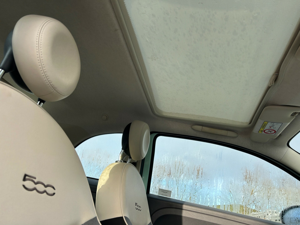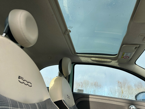 This 2016 Fiat 1.2 Lounge Hatchback has traveled 103,000 miles and is powered by a petrol engine, making it ULEZ compliant. With 4 seats and 3 doors, this hatchback provides both convenience and style. The Body Coloured Side Rubbing Strips with 500 Logo add a touch of uniqueness to the exterior, while the interior features Cloth in a Black-Light Grey-Ivory colour scheme with an Ivory Ambience. Additionally, this vehicle includes a Space Saver Spare Wheel and a 12V Socket in the front for added practicality. With a smooth mint exterior, this Fiat 1.2 Lounge Hatchback is a reliable and stylish option for those in search of a Euro 6 (s/s) (69 bhp) vehicle. v socket - front, 5in touchscreen radio with aux - usb - dab - bluetooth, 15in alloy wheels, body coloured bumpers, chrome kit, chrome plated exterior door handles, electric front windows, electrically adjustable painted door mirrors, fix and go puncture repair kit, fixed glass roof with sunblind, heat reflective windows, heated rear window, 50-50 split folding rear seat with height adjustable head restraints, air conditioning, front seats with memory function, fuel cap with tap, height adjustable drivers seat, height adjustable front head restraints, instrument panel with rev counter, seats-back pockets, steering wheel - height adjustment, steering wheel - leather with audio controls, 7 airbags, abs with ebd, automatic door locking, esc - electronic stability control, hazard light automatic activation during emergency braking, isofix attachment points for child safety seat on rear seat, rear window wiper-washer, remote central locking, dualdrive power steering, gsi - gear shift indicator, rear parking sensors, tpms - tyre pressure monitoring system, trip computer, fog lights, led daytime running lights