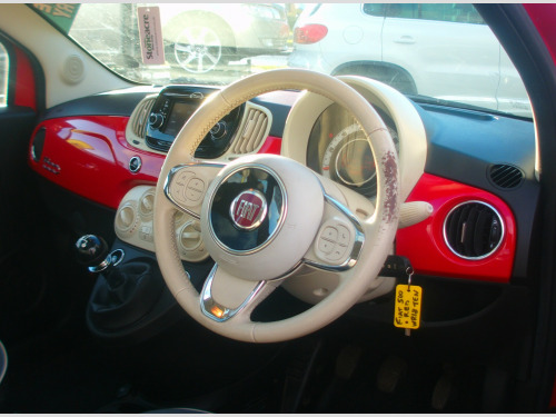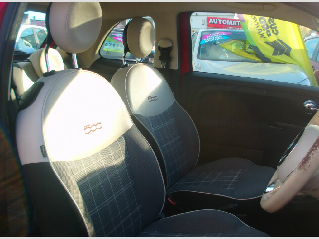 2018 FIAT 500 LOUNGE 1.2 3 DOOR, RED, 96,836 MILES, 2 OWNERS, 4 STAMP SERVICE HISTORY, DAB RADIO, BLUETOOTH, USB, AUX, PANORAMIC ROOF, PARKING SENSORS, LEATHER AND CLOTH UPHOLSTERY, E/MIRRORS, E/WINDOWS, ULEZ COMPLIANT, ISOFIX, ABS, MULTI AIR BAGS, FRONT FOGS, R/W/WIPE, 15'' ALLOY WHEELS, SUSSEX, EAST SUSSEX, EASTBOURNE, BN23 6PJ, 01323 643326, r conditioning, bluetooth connection, half leather, panoramic sunroof, multi-function steering wheel, parking sensors, power steering, traction control, abs, isofix child seat anchor points, multiple airbags, electric mirrors, electric windows, auxiliary input socket, alloy wheels, colour coded body, front fog lights, rear wash/wipe, dab radio, ulez compliant, usb, zero admin charge