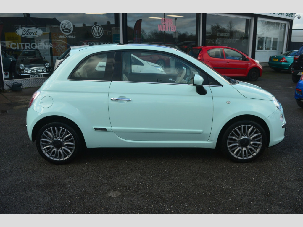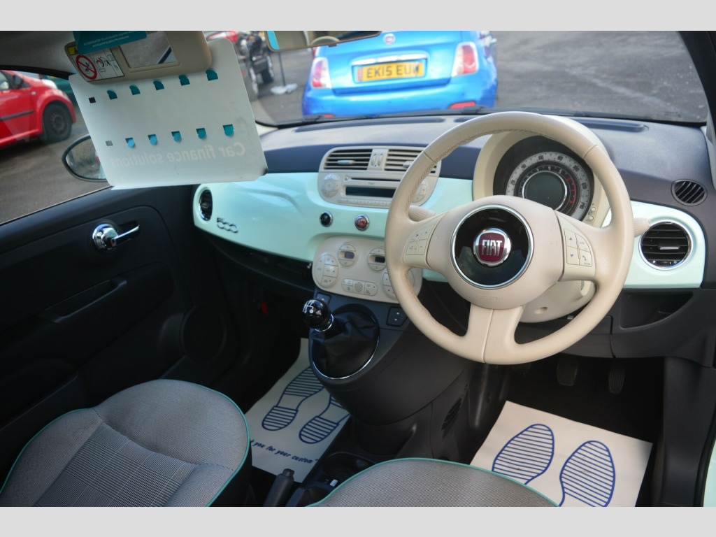STUNNING FIAT 500 LOUNGE FINISHED IN MINT GREEN+THIS AMAZING CAR COMES FULL SERVICE HISTORY+TWO KEYS+PANORAMIC ROOF+AIR CONDITIONING+ELECTRIC WINDOWS+MULTI FUNCTION STEERING WHEEL+PARKING SENSORS+ALLOY WHEELS+COMES WITH NEW 12 MONTH MOT+ULEZ COMPLIANT+WARRANTY INCLUDED+