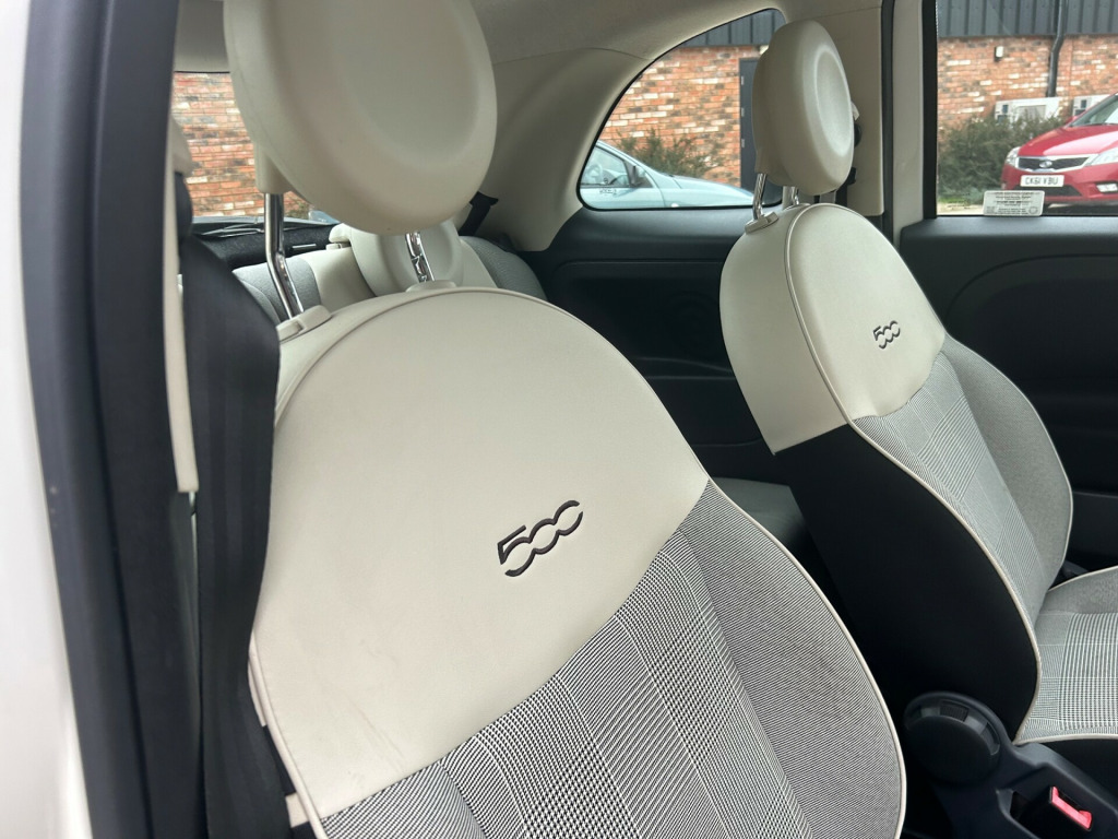 v socket - front, blue&me - hands free system with usb port, radio-cd and mp3 player, usb port, 16in alloy wheels - 74a, body coloured bumpers, body coloured side rubbing strips with 500 logo, bumpers - chrome inserts, chrome exhaust tailpipe, chrome kit, chrome window contours, door handles - chrome, electric front windows, electrically adjustable heated door mirrors, fix and go puncture repair kit, fixed glass roof with sunblind, locking wheel nuts, space saver spare wheel, thermal windows, abs - anti-lock braking system, asr - anti-slip regulation, airbags - driver, airbags - front side, airbags - passenger, bas - brake assistance system, drivers knee airbag, ebd - electronic brakeforce distribution, esp - electronic stability programme, hill holder, msr - motor slip regulation, remote central locking, steering wheel - black, window airbags, climate control - automatic monozone, door handles interior - chrome, grab handle, height adjustable drivers seat, seats - passengers memory function, seats-back pockets, split folding 50:50 rear seat, steering wheel - height adjustment, steering wheel - leather with audio controls, steering wheel audio controls, storage under passenger seat, daytime running lights, fog lights, dualdrive power steering, exterior temperature sensor, gsi - gear shift indicator, rear parking sensors, tyre pressure monitor system, voice recognition