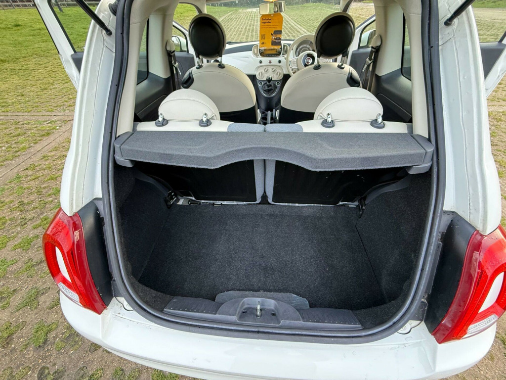 Fiat 500 1.2 Lounge Hatchback 3dr Vehicle DetailsMileage: 37,054 miles (Warranted)Fuel Type: PetrolTransmission: ManualColour: WhiteBody Type: Hatchback (3dr)HPI Status: ClearULEZ Compliant / ULEZ FreeLounge Specification & FeaturesPanoramic Glass SunroofPart Leather InteriorAir ConditioningAutomatic Climate ControlBluetooth ConnectivityAUX / Media ConnectivityAlloy WheelsComfortable SeatsCondition & MechanicalMechanically PerfectEngine-wise smooth and responsiveGearbox & suspension very smoothVery well maintained throughoutLow insurance groupVery economical to runOverall ConditionThis Fiat 500 Lounge looks & drives brilliant and has been well cared for.A stylish, reliable and economical hatchback just buy & drive.Truly superb throughout.FRESH SERVICEFRESH MOTFREE BREAKDOWN COVERNATIONWIDE DELIVERY AVAILABLEPart Exchange WelcomeView by Appointment OnlySummaryA very clean Fiat 500 Lounge with sunroof, part leather and media connectivity.Ideal first car or city runabout.First to see will buy. ace saver spare wheel, cloth - black-light grey-ivory with ivory ambience, 12v socket - front, 15in alloy wheels, 50-50 split folding rear seat with height adjustable head restraints, 5in touchscreen radio with aux - usb - dab - bluetooth, 7 airbags, abs with ebd, air conditioning, automatic door locking, body coloured bumpers, chrome kit, chrome plated exterior door handles, dualdrive power steering, esc - electronic stability control, electric front windows, electrically adjustable painted door mirrors, fix and go puncture repair kit, fixed glass roof with sunblind, fog lights, front seats with memory function, fuel cap with tap, gsi - gear shift indicator, hazard light automatic activation during emergency braking, heat reflective windows, heated rear window, height adjustable drivers seat, height adjustable front head restraints, isofix attachment points for child safety seat on rear seat, instrument panel with rev counter, led daytime running lights, rear parking sensors, rear window wiper-washer, remote central locking, seats-back pockets, steering wheel - height adjustment, steering wheel - leather with audio controls, tpms - tyre pressure monitoring system, trip computer