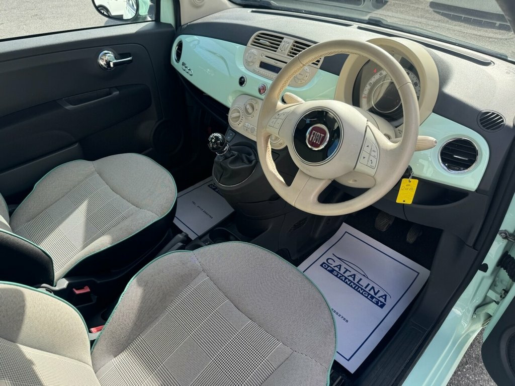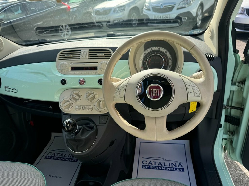 Secure First Refusal – Reserve Today! Don't miss the opportunity to be first in line for this vehicle. By placing a deposit, you can secure first refusal before it goes live to the public. We're currently preparing the vehicle to an exceptional standard. This includes a fresh service, a minimum of 6 months' MOT with all advisories resolved, and our complimentary 3-month warranty for added peace of mind. Once reserved, we can have the car fully prepared and ready for viewing or collection within 48 hours. If you view and test drive the vehicle and decide it's not right for you, your deposit will be fully refunded—no questions asked. Please note: if you choose not to attend your appointment or fail to view the vehicle, the deposit will be non-refundable. 2014 (64) FIAT 500 1.2 Lounge Hatchback 3dr is offered to you for sale in Pudsey, Leeds, finished in green, this used FIAT 500 1.2 Lounge Hatchback 3dr is one of many handpicked used vehicles that used car dealer, Catalina of Stanningley, Pudsey, Leeds have available for sale. 12V Socket - Front, 15in Alloy Wheels - 73Z, ABS - Anti-Lock Braking System, ASR - Anti-Slip Regulation, Air Conditioning, Airbags - Driver, Airbags - Front Side, Airbags - Passenger, BAS - Brake Assistance System, Blue&Me - Hands Free System with USB, Body Coloured Bumpers, Chrome Kit, Drivers Knee Airbag, Dualdrive Power Steering, EBD - Electronic Brakeforce Distribution, ESP - Electronic Stability Programme, Electric Front Windows, Electrically Adjustable Heated Door Mirr, Exterior Temperature Sensor, Fix and Go Puncture Repair Kit, Fixed Glass Roof, GSI - Gear Shift Indicator, Grab Handle, Height Adjustable Drivers Seat, Hill Holder, Locking Wheel Nuts, MSR - Motor Slip Regulation, R