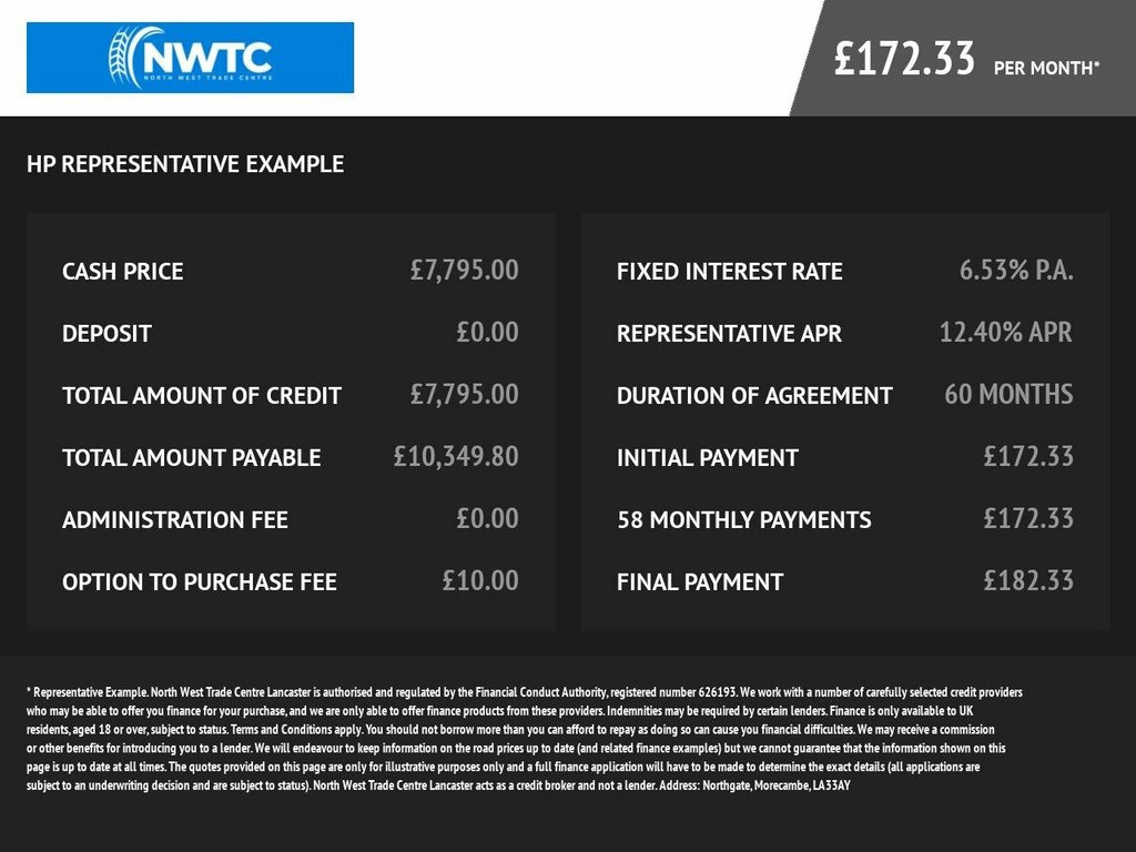 Welcome to Northwest Trade Centre – The Northwest's Trusted Trade Vehicle Specialist! At Northwest Trade Centre, we specialise in delivering great vehicles at even better prices. Every car we sell is HPI clear and mileage verified unless stated, so you can buy with total confidence knowing you're getting a genuine, reliable vehicle with nothing to hide. With over 700 vehicles available across our group stock, we offer a wide variety of makes and models to suit all budgets and lifestyles. Whether you're searching for your first car, a family-friendly SUV, or a dependable workhorse, we've got something for everyone. To give you extra peace of mind, every qualifying vehicle includes a free nationwide warranty, with the option to upgrade to extended coverage for added protection. We're happy to accept part exchanges, and we provide fair, fast valuations with no pressure to commit. We also offer a full suite of flexible finance options, including Hire Purchase (HP) and subprime finance for customers with varying credit profiles. Speak with our team for a tailored finance quote to suit your circumstances. At Northwest Trade Centre, exceptional customer service is at the core of everything we do. Our team is friendly, professional, and here to help make your car-buying journey as easy and stress-free as possible. Don't just take our word for it—check out our glowing Google reviews from satisfied customers across the UK. Important Notice: We 12V Point, 15in Alloy Wheels, 50-50 Split Folding Rear Seat with Heigh, 5in Touchscreen Radio with AUX - USB - D, ABS with EBD, Air Conditioning, Automatic Door Locking, Body Coloured Bumpers, Chrome Kit, Chrome Plated Exterior Door Handles, Cruise Control, Driver and Passenger Airbag with Dual St, Drivers Knee Airbag, Dualdrive Power Steering, ESC - Electronic Stability Control, Electric Front Windows, Electrically Adjustable Painted Door Mir, Fix and Go Puncture Repair Kit, Fixed Glass Roof with Sunblind, Fog Lights, Front Seat Belts with Pretensioners - Lo, Front Seats with Memory Function, Hazard Light Automatic Activation During, Heat Reflective Windows, Heated Rear Window, Height Adjus
