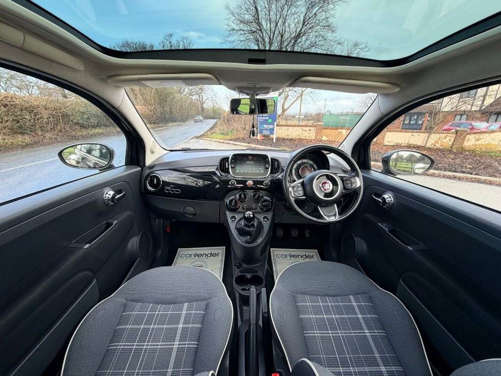 Carvender is presenting the stylish and dynamic 2017 Fiat 500 1.2 Lounge 3dr. The 500 is a premium compact hatchback that combines charm, style and versatility. This Fiat 500 is powered by a responsive 1.2 litre engine which delivering 69 brake horsepower. The Lounge trim level enhances the Fiat 500's exterior with stylish design elements. With its sleek profile and stylish touches this three-door compact hatchback exudes charm and sophistication on every journey. This Fiat 500 is equipped with premium features including Half Leather Seats, Reversing Parking Sensors, Sun Roof, An Advanced Infotainment System with SatNav, Mobile Connection and much more. Only £20 Road Tax for 12 months. This Fiat 500 is in very good condition and has been very well maintained. We have 7 Services in the file which have been carried out at the mileages of 6815, 16773, 22687, 27576, 31560, 39022 and 43026 on 14/01/2026. Please note that advisories in current MOT have all been fixed and we can do fresh 12 months MOT before sale. Don't miss out on the opportunity to own this fantastic Fiat 500. Contact us today and schedule a test drive or visit our website for home delivery with 14 days money back guarantee. 15in Alloy Wheels, 50-50 Split Folding Rear Seat with Heigh, 5in Touchscreen Radio with AUX - USB - D, 7 Airbags, ABS with EBD, Air Conditioning, Automatic Door Locking, Body Coloured Bumpers, Chrome Kit, Chrome Plated Exterior Door Handles, Cruise Control, Driver and Passenger Airbag with Dual St, Dualdrive Power Steering, ESC - Electronic Stability Control, Electric Front Windows, Electrically Adjustable Painted Door Mir, Fix and Go Puncture Repair Kit, Fixed Glass Roof with Sunblind, Fog Lights, Front Seats with Memory Function, GSI - Gear Shift Indicator, Hazard Light Automatic Activation During, Heat Reflective Windows, Heated Rear Window, Height Adjustable Drivers Seat, Height Adjustab