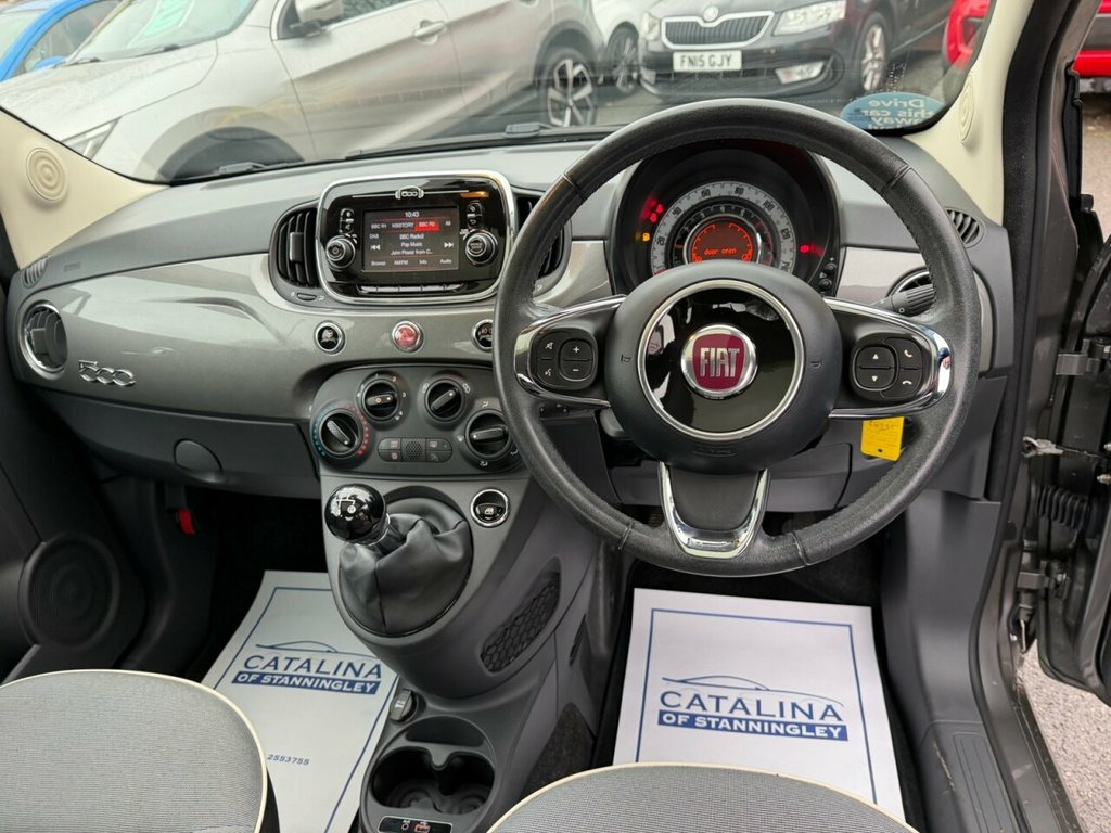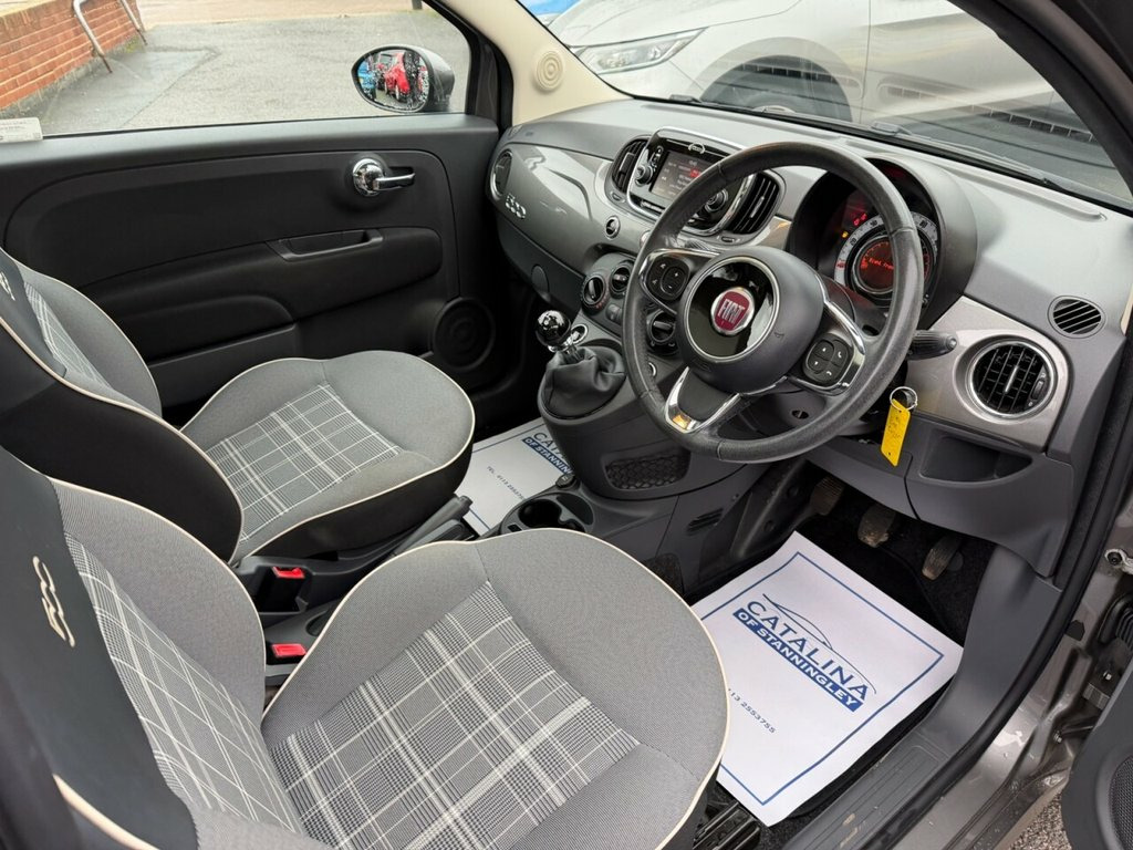 Fiat 500 1.2 Lounge – Very Low Miles | Great Spec | Stylish City Car Petrol | Manual | Euro 6 | 69 bhp | 22,347 Miles | MOT Until 07-09-2026 This Fiat 500 1.2 Lounge is a very low-mileage example of Fiat's ever-popular and stylish city car. With just 22,347 miles from new, only two owners, and a solid 5-service history, it has been well cared for and remains in excellent condition. Powered by the reliable and economical 1.2-litre petrol engine producing 69 bhp, it offers smooth, easy driving with low running costs, making it ideal for town use, commuting, or as a first car. Its Euro 6 compliance makes it suitable for modern clean-air zones. Finished in smart grey with a dark interior, this Lounge model offers a great level of specification and the classic Fiat 500 charm, combining comfort, style, and practicality. A lovely, low-mileage example of the Fiat 500 Lounge — economical, stylish, and great value. Vehicle Preparation & Warranty Every vehicle is supplied with a minimum of 6 months MOT. If the remaining MOT is less than 6 months at point of sale, the car will receive a FREE 12-month MOT prior to collection. All vehicles are fully up to date with servicing where required. We include a FREE 3-month engine warranty, provided on a return-to-base basis. For additional peace of mind, we offer comprehensive nationwide warranty upgrades covering both parts and labour. These policies can include cover for major components such as the engine, gearbox, t 15in Alloy Wheels, 50-50 Split Folding Rear Seat with Heigh, 5in Touchscreen Radio with AUX - USB - D, 7 Airbags, ABS with EBD, Air Conditioning, Automatic Door Locking, Body Coloured Bumpers, Chrome Kit, Chrome Plated Exterior Door Handles, Cruise Control, Driver and Passenger Airbag with Dual St, Dualdrive Power Steering, ESC - Electronic Stability Control, Electric Front Windows, Electrically Adjustable Painted Door Mir, Fix and Go Puncture Repair Kit, Fixed Glass Roof with Sunblind, Fog Lights, Front Seats with Memory Function, GSI - Gear Shift Indicator, Hazard Light Automatic Activation During, Heat Reflective Windows, Heated Rear Window, Height Adjustable Drivers Seat, Height Adjustab