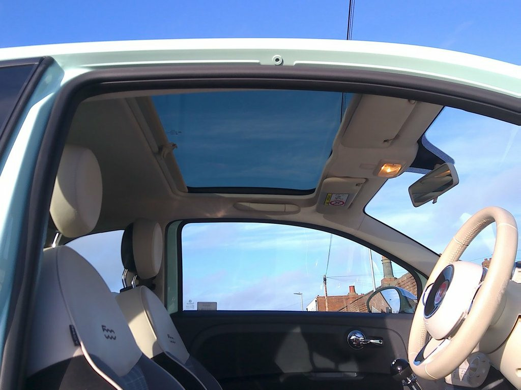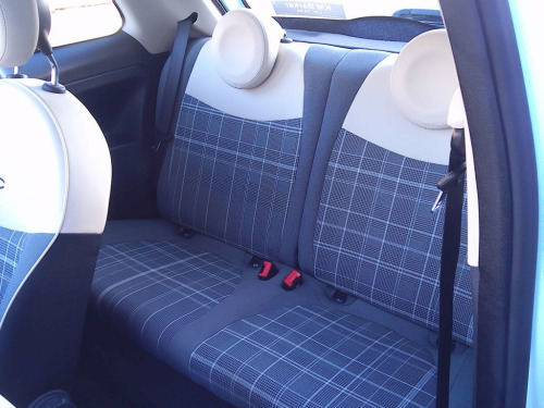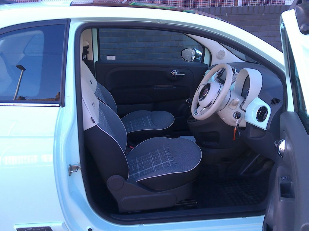 Finished in Smooth Mint with coordinating grey check and ivory interior, this superb Fiat 500 Lounge has only covered just 33,900 miles and is complete with full service history (8 recorded stamps) Specification includes a fixed glass roof with a sunblind, body coloured side rubbing strips featuring the iconic 500 logo, Air Conditioning, Cruise Control, Bluetooth and for added convenience, rear parking sensors are fitted, making manoeuvring in tight spaces much easier. It is HPI checked clear, has a service/handbook pack and two keys. Our advertised price includes a further service, 12 months MOT and a 6 month warranty for complete peace of mind. This Fiat 500 Lounge stands out due to its low insurance group, which can help keep your running costs down. Furthermore, its low CO2 emissions indicate that it is more environmentally friendly than many other vehicles in its class. These highlights, combined with its well maintained condition and desirable features, make this particular Fiat 500 a compelling choice for those seeking a stylish and economical city car. We are happy to take your part exchange and we guarantee to offer the best price possible for your car. Thinking of car finance? We work with leading companies to source the best deal for you. With a simple straight forward application, please ask us for a quotation to see just how affordable this car could be. The car is here at the Showroom available to view and test drive. We have flexible opening times, s Smooth Mint, Cloth - Black-Light Grey-Ivory with Ivor, Body Coloured Side Rubbing Strips with 5, 15in Alloy Wheels, Cruise Control, Rear Parking Sensors, Fixed Glass Roof with Sunblind, Air Conditioning, Fog Lights, 7 Airbags, ABS with EBD, 5in Touchscreen Radio with AUX - USB - D, Automatic Door Locking, Body Coloured Bumpers, Chrome Kit, Chrome Plated Exterior Door Handles, Driver and Passenger Airbag with Dual St, Dualdrive Power Steering, ESC - Electronic Stability Control, Electric Front Windows, Electrically Adjustable Painted Door Mir, Fix and Go Puncture Repair Kit, 50-50 Split Folding Rear Seat with Heigh, GSI - Gear Shift Indicator, Hazard Light Automatic Activation During, Heat Re