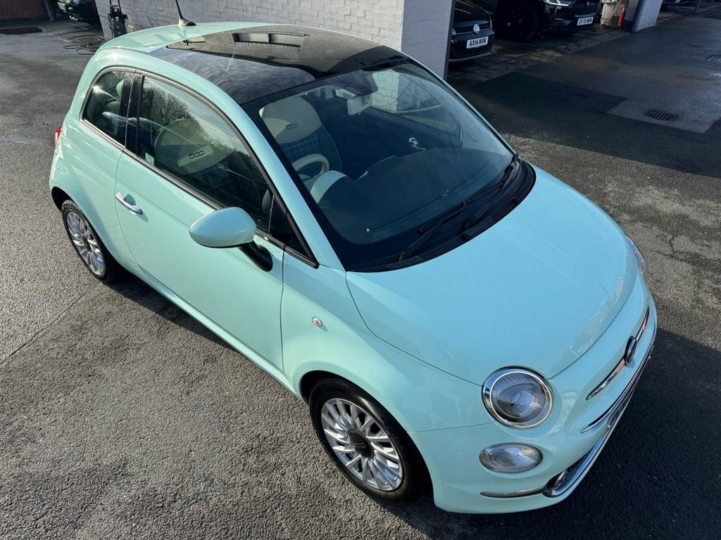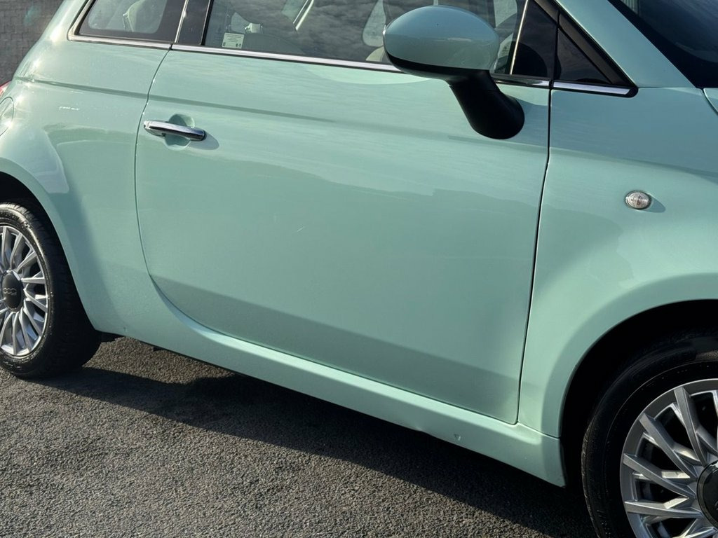 Fiat 500 1.2 Lounge Finished in Smooth Mint paintwork with 15" silver alloys. Only 2 owners from new, full service history and recently serviced at 34,166 miles. Over 70 miles per gallon fuel economy and insurance group 8. Spec includes rear parking sensors, glass sunroof with blind, multi-function steering, trip computer, Cruise Control, Bluetooth, USB input, Remote central locking with 2 keys, Air Con and much more. Call 0113 2636003 or visit leedsmotorcompany.co.uk. 12V Point, 15in Alloy Wheels, 50-50 Split Folding Rear Seat with Heigh, 5in Touchscreen Radio with AUX - USB - D, ABS with EBD, Air Conditioning, Automatic Door Locking, Body Coloured Bumpers, Chrome Kit, Chrome Plated Exterior Door Handles, Cruise Control, Driver and Passenger Airbag with Dual St, Drivers Knee Airbag, Dualdrive Power Steering, ESC - Electronic Stability Control, Electric Front Windows, Electrically Adjustable Painted Door Mir, Fix and Go Puncture Repair Kit, Fixed Glass Roof with Sunblind, Fog Lights, Front Seat Belts with Pretensioners - Lo, Front Seats with Memory Function, Hazard Light Automatic Activation During, Heat Reflective Windows, Heated Rear Window, Height Adjus