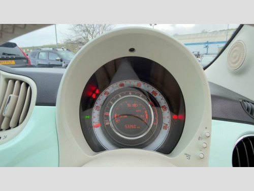IM car supermarket is pleased to offer this very well Fiat 500 1.2 Lounge Euro 6 (s/s) 3dr in green colour with only 52,899 miles on the clock. The car comes with 3 months warranty. MOT valid until 15 June 2026. service history info; Number of services 4, Last Service 16/05/2023, Last service mileage 29,622 miles. A high specification includes Panoramic Roof, Reverse Parking Sensors, Climate Control, Phone and Media BT Connection. The Lounge trim level offers a comfortable and well equipped interior, featuring air conditioning to keep you cool and front seats with a memory function for personalised comfort. Entertainment and connectivity are well covered with a 5 inch touchscreen radio that includes AUX, USB, DAB, and Bluetooth, allowing you to enjoy your favourite music and take calls hands free. Adding to the appeal of this Fiat 500 Lounge is the fixed glass roof with a sunblind, creating a bright and airy cabin. For added convenience, rear parking sensors are fitted, making manoeuvring in tight spaces much easier. This particular model also benefits from being in a low insurance group, which can help to keep your running costs down, indicating it is a more economical choice compared to many other vehicles in its class. 12V Point, 15in Alloy Wheels, 50-50 Split Folding Rear Seat with Heigh, 5in Touchscreen Radio with AUX - USB - D, ABS with EBD, Air Conditioning, Automatic Door Locking, Body Coloured Bumpers, Chrome Kit, Chrome Plated Exterior Door Handles, Cruise Control, Driver and Passenger Airbag with Dual St, Drivers Knee Airbag, Dualdrive Power Steering, ESC - Electronic Stability Control, Electric Front Windows, Electrically Adjustable Painted Door Mir, Fix and Go Puncture Repair Kit, Fixed Glass Roof with Sunblind, Fog Lights, Front Seat Belts with Pretensioners - Lo, Front Seats with Memory Function, Hazard Light Automatic Activation During, Heat Reflective Windows, Heated Rear Window, Height Adjus