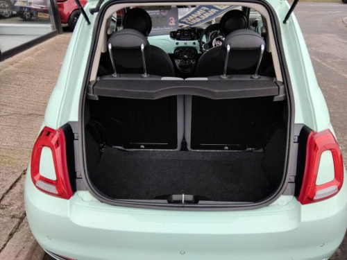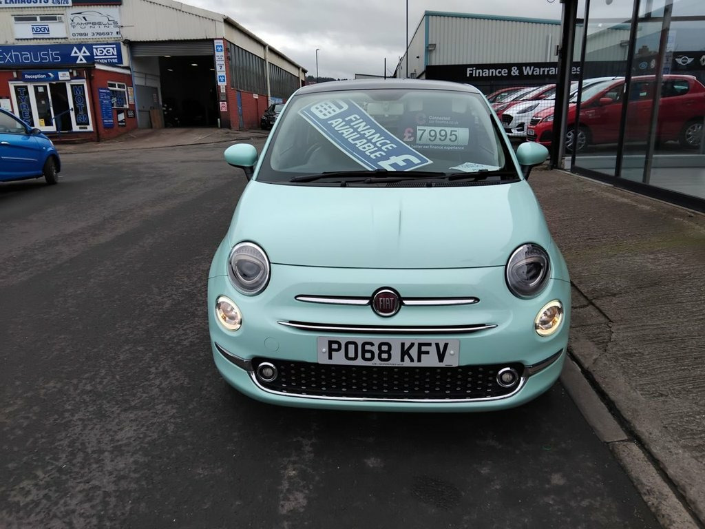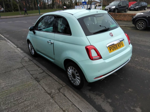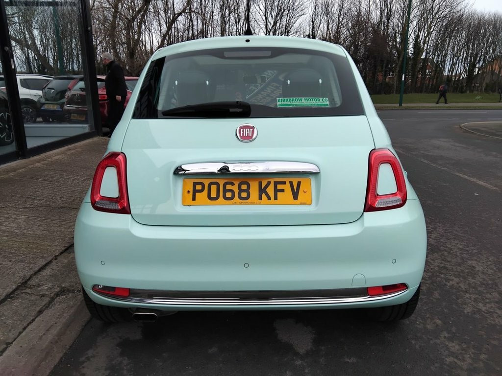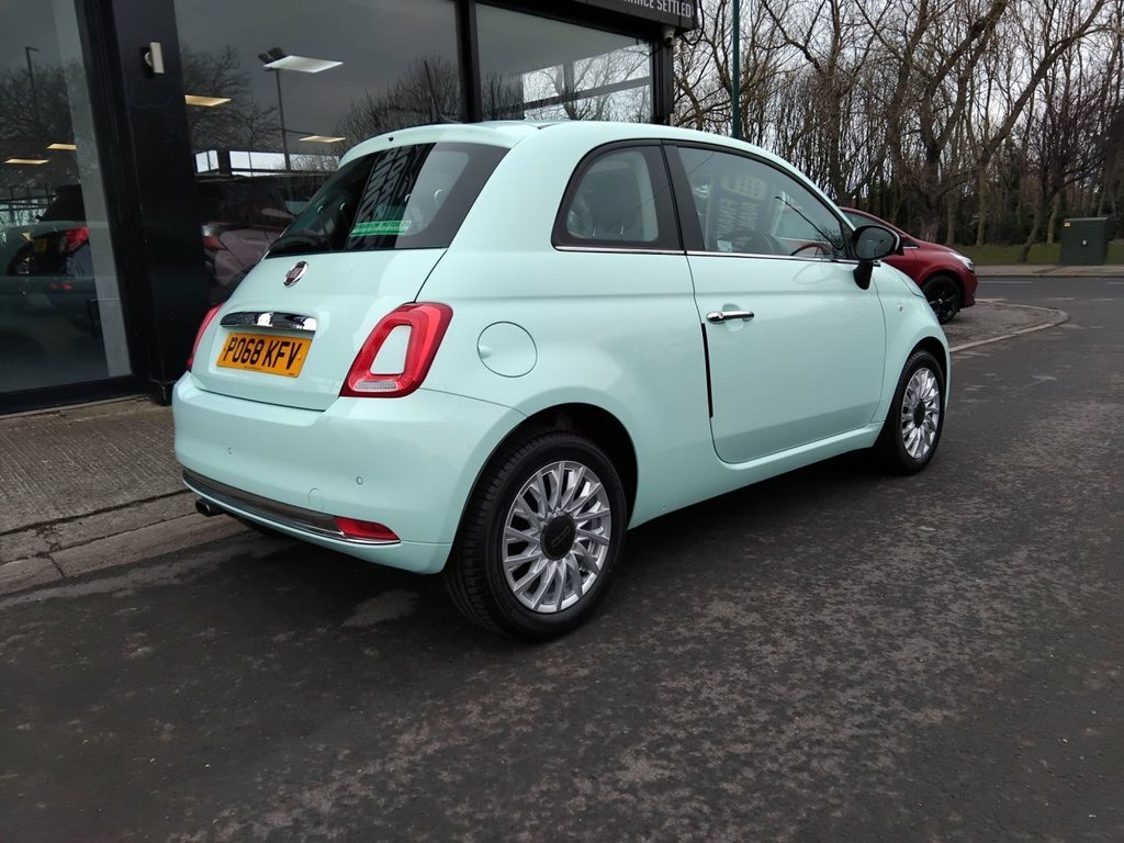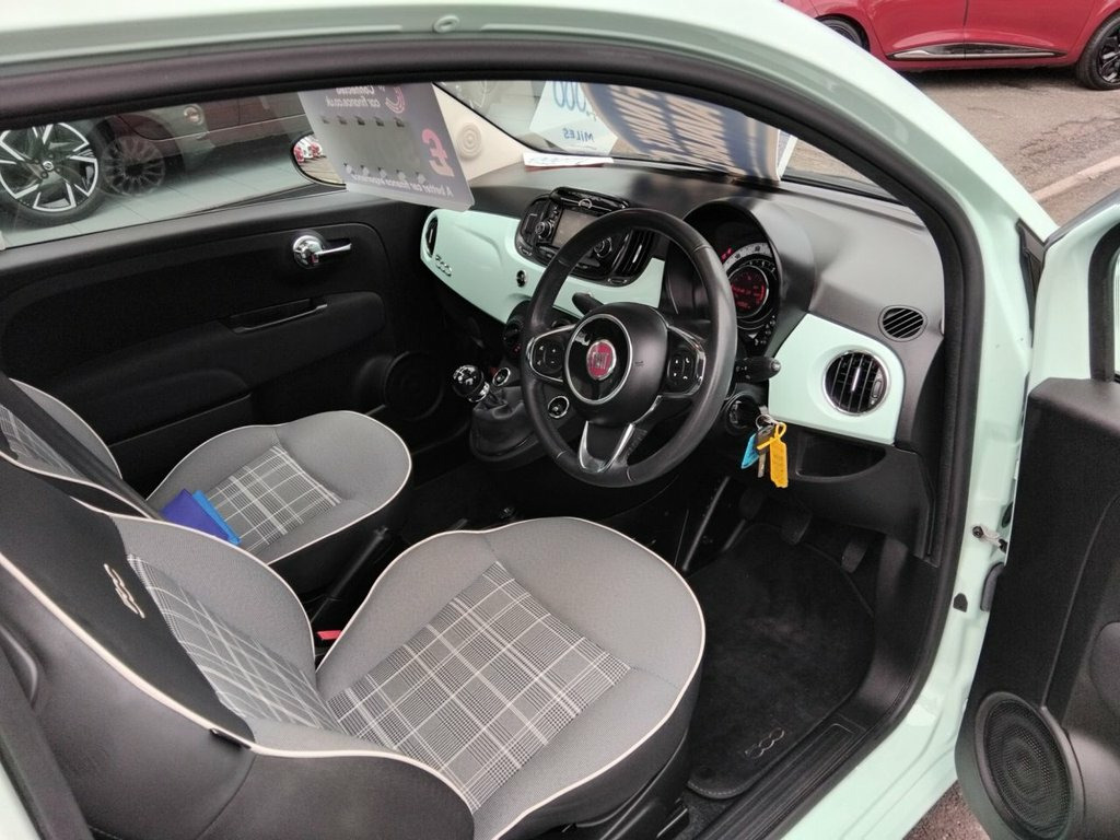 AVAILABLE AT OUR MARSKE SITE, 105 REDCAR ROAD, MARSKE TS11 6HU BIRKBROW MOTOR COMPANY AT MARSKE IS DELIGHTED TO OFFER THIS BEAUTIFULLY PRESENTED 2018/68 PLATE FIAT 500 1.2 LOUNGE 3 DOOR HATCH IN SMOOTH MINT WITH ONLY 14,060 MILES COVERED FROM NEW, SPEC INCLUDES 15" ALLOY WHEELS, FRONT FOG LIGHTS, LED DAYTIME RUNNING LIGHTS, ELECTRIC WINDOWS AND DOOR MIRRORS, REMOTE CENTRAL LOCKING, AIR CONDITIONING 5" TOUCHSCREEN DAB DIGITAL RADIO WITH BLUETOOTH, USB AND AUX, CRUISE CONTROL WITH SPEED LIMITER, CITY POWER STEERING BUTTON, REVERSE PARKING SENSORS, PANORAMIC GLASS ROOF WITH SUNBLIND, TINTED GLASS, LOW INSURANCE GROUP, EXCELLENT ECONOMY WITH 60.1 MPG, IDEAL FOR NEW DRIVER, FINANCE ARRANGED 12V Point, 5in Touchscreen Radio with AUX - USB - D, 15in Alloy Wheels, Body Coloured Bumpers, Chrome Kit, Chrome Plated Exterior Door Handles, Electric Front Windows, Electrically Adjustable Painted Door Mir, Fix and Go Puncture Repair Kit, Fixed Glass Roof with Sunblind, Heat Reflective Windows, Heated Rear Window, Tinted Glass, 50-50 Split Folding Rear Seat with Heigh, Air Conditioning, Front Seats with Memory Function, Height Adjustable Drivers Seat, Height Adjustable Front Head Restraints, Instrument Panel with Rev Counter, Seats-back Pockets, Steering Wheel - Height Adjustment, Steering Wheel - Leather with Audio Cont, Cloth - Black-Light Grey-Ivory with Blac, Dualdrive Power Steering,