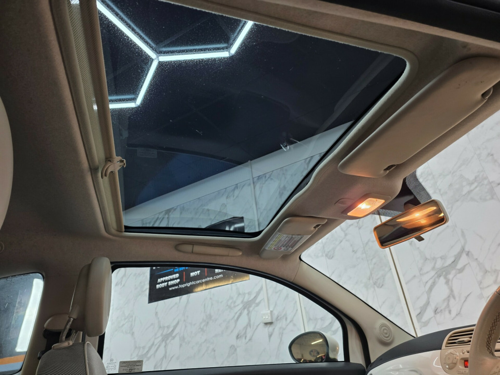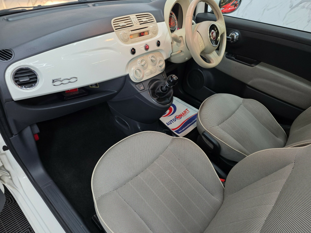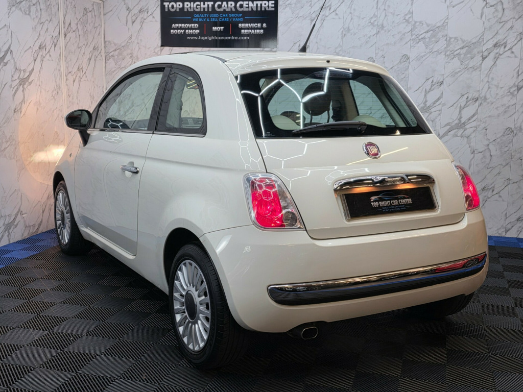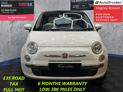 *** NIL DEPOSIT FINANCE AVAILABLE *** ***HPI CLEAR ***6 MONTHS WARRANTY AND BREAKDOWN COVER WITH THIS CAR.(0% interest 9 months payment plan for extended warranty options are available for 1 or 2 years).Very Low mileage 38k miles. Low 35 pounds road tax.FULL SERVICE HISTORY. FULL MOT ON SALE. We just done the fresh service also we replaced the starter motor and coil spring.This stunning Fiat 500 has been sourced directly from its Previous Private Owner. Every now and again, a car comes into stock at Top Right Car Centre, that you cannot help but fall in love with.Top Spec Lounge has panoramic glass roof, all electric windows, city mode, climate control. Clean Car in White colour. Great comfortable family car. Well maintained body work and interior. Bullet fast response. Checked by our engineers. Professionally detailed. Good reliable runner. Price checked. We've just completed a full pre delivery inspection on the car to give you complete piece of mind. 2 central locking keys. Smooth gear box. Clean alloy wheels. Excellent condition tyres. Spare wheel. Multimedia has RADIO CD mp3 AUX. Run with no fault strong reliable engine. Good fuel economy. First to see will buy it this well looked after car. p/x welcome. We do price our cars/van as competitively as possible and because of this we sell cars/vans very quickly. BE QUICK! MISS IT - MISS OUT. With so much variety, quality and highly rated award winner 2024 and 2025, it is no wonder we are super busy all the time. Why Buy From Top Right Car Centre?Thoroughly Inspected Cars. All our vehicles are quality-checked and HPi verified, giving you peace of mind with every purchase.Multi Award-Winning Family Business. As a trusted family-run business, we have earned awards for our customer service and expertise.Hand-Picked, Quality Cars. We carefully select only the finest cars with full service histories, so you can drive away with confidence.Test Driven for Assurance. Each car is personally test-driven by our team, ensuring it meets our high standards.Delivery Service available. in alloy wheels, body colour door mirrors, chrome kit, electric front windows, electrically adjustable heated door mirrors, fixed glass roof with sunblind, fixed glass sunroof with sunblind, space saver spare wheel, abs - anti-lock braking system, airbags - driver, airbags - front side, airbags - passenger, drivers knee airbag, ebd - electronic brakeforce distribution, isofix child seat attachments, remote central locking, window airbags, air conditioning, black ambience, ivory ambience, lounge interior trim, split folding 50:50 rear seat, steering wheel - height adjustment, steering wheel - leather with audio controls, blue&me - hands free system with usb port, radio-cd and mp3 player, power steering - dualdrive electric