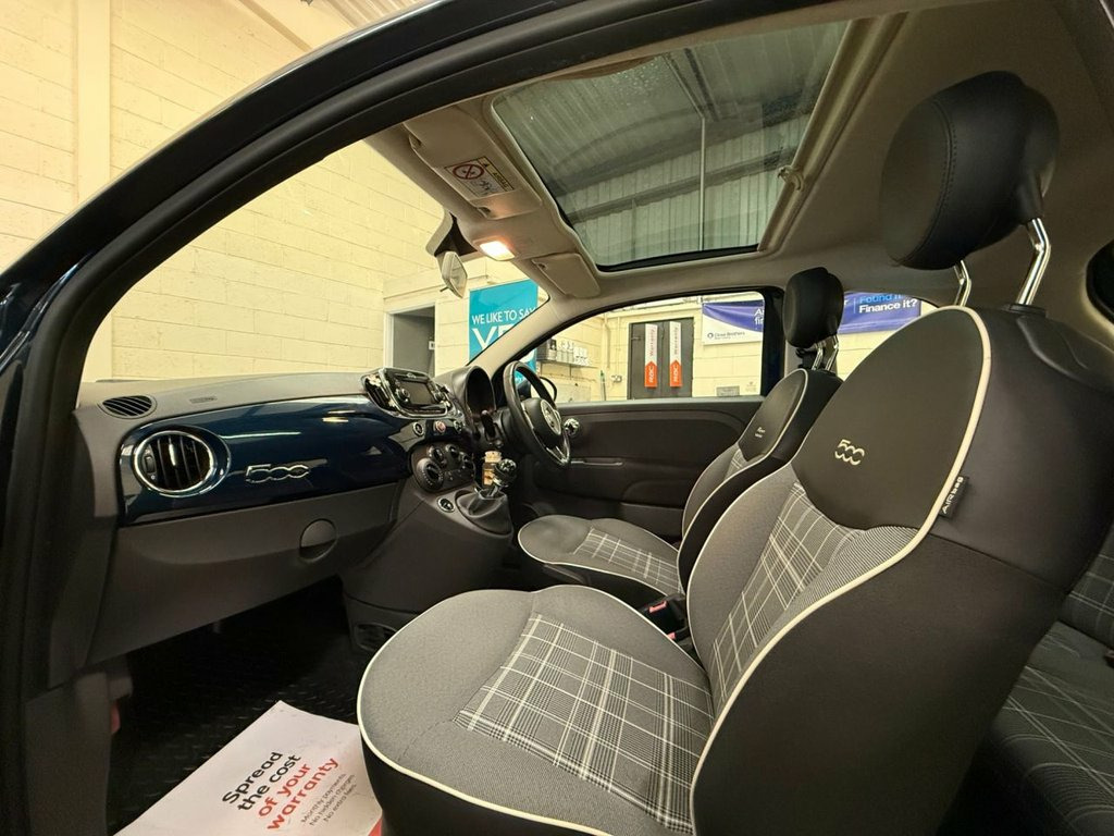 BUY NOW PAY FEB 2026* Finance From 10.9% APR, Part Exchange Welcome, Free RAC Warranty & Breakdown Cover, Epic Blue Metallic With Black Light Grey Ivory With Black Ambience Cloth Seating, Only 2 Previous Owners From New With 4 Services At 8,587, 17,254, 24,185 & 28,947 Miles, ULEZ EURO 6, Panoramic Glass Sunroof, Rear Parking Sensors, Cruise Control, Bluetooth, 5" Touch Screen Audio Unit, USB Aux In & DAB Audio, Tinted Glass, Air Conditioning, Smart Phone Connectivity, Fiat Alloy Road Wheels With Lockers & Key, Electric Windows, Electric Mirrors, Anti Theft System, Anti Lock Braking, Multiple Air Bags, On Board Fuel Trip Computer, Power Assisted Steering, Traction Control, Daytime Running Lights, Front Fogs, Remote Locking With Tailgate Release, Two Keys, Isofix, Tyre Pressure Monitoring System, Parcel Shelf, Leather Steering Wheel, 5 Speed Manual Gearbox, *If Financed. 15in Alloy Wheels, 50-50 Split Folding Rear Seat with Heigh, 5in Touchscreen Radio with AUX - USB - D, 7 Airbags, ABS with EBD, Air Conditioning, Automatic Door Locking, Body Coloured Bumpers, Chrome Kit, Chrome Plated Exterior Door Handles, Cruise Control, Driver and Passenger Airbag with Dual St, Dualdrive Power Steering, ESC - Electronic Stability Control, Electric Front Windows, Electrically Adjustable Painted Door Mir, Fix and Go Puncture Repair Kit, Fixed Glass Roof with Sunblind, Fog Lights, Front Seats with Memory Function, GSI - Gear Shift Indicator, Hazard Light Automatic Activation During, Heat Reflective Windows, Heated Rear Window, Height Adjustable Drivers Seat, Height Adjustab
