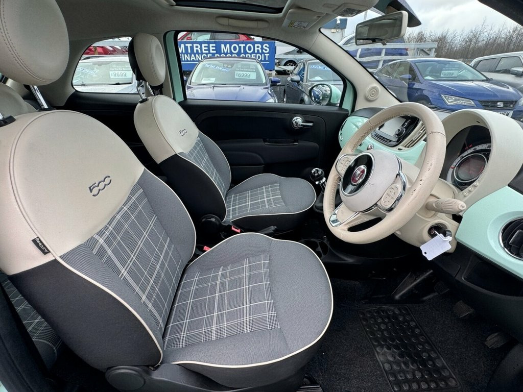 Here we have a superb example of our Fiat 500 Lounge Edition - good on fuel plus comes with the full Lounge Pack which includes alloy wheels, AUX Port, Blue & Me Bluetooth, Leather steering wheel with audio controls, a Free 3 Month Warranty & a Full 12 Month MOT with NO Advisories. We do a FREE Experian HPI Check on every vehicle. Poor credit finance is also available on this car. We have a huge selection of over 250 cars to choose from & are open 7 days a week. WARRANTY Every car comes with a 3 month parts & labour warranty that can be extended upon request. MOT We complete a full 12 month MOT that will be carried out at the point of sale. You don't have to worry about the previous MOT as we will do a fresh one for you & complete any previous or current advisories. HPI All of our cars have a full HPI check. If any of our cars are showing on finance or any mileage discrepancies then just give us a call as usually Experian just forget to update their system which can always be rectified. VOSA All of our cars have an up to date VOSA history check. PART EXCHANGE We can take your old car in as part exchange no matter what the condition. LOCATION We are situated just opposite the entrance to the old Federation Brewery in Dunston, just off the A1 Motorway, just to the rear of the Metrocentre in Gateshead. PHOTOGRAPHY Please visit our website more photos & a video. We can do a live viewing of any car. PAYMENT We accept all major debit 12V Point, 15in Alloy Wheels, 50-50 Split Folding Rear Seat with Heigh, 5in Touchscreen Radio with AUX - USB - D, ABS with EBD, Air Conditioning, Automatic Door Locking, Body Coloured Bumpers, Chrome Kit, Chrome Plated Exterior Door Handles, Cloth - Black-Light Grey-Ivory with Ivor, Cruise Control, Driver and Passenger Airbag with Dual St, Drivers Knee Airbag, Dualdrive Power Steering, Electric Front Windows, Electrically Adjustable Painted Door Mir, ESC - Electronic Stability Control, Fix and Go Puncture Repair Kit, Fixed Glass Roof with Sunblind, Fog Lights, Front Seat Belts with Pretensioners - Lo, Front Seats with Memory Function, Hazard Light Automatic Activation During, Heat Reflective