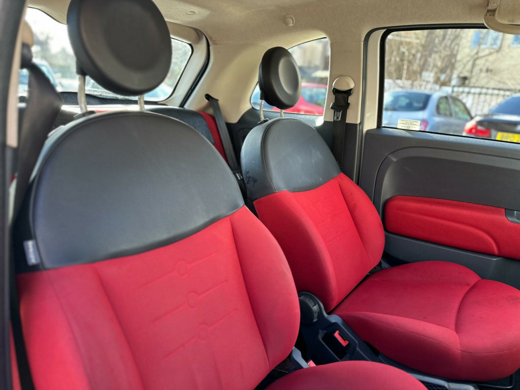 This 2009 Fiat 500 Pop is presented with a clear vehicle history check and an MOT valid until September 2026, offering peace of mind for its next owner. This popular city car is equipped with a 1.2 litre petrol engine and comes with a 3 month warranty for added reassurance. While it has partial service history, the vehicle's provenance is otherwise sound. ULEZ and CAZ compliant. Low tax of £35 annually. Low insurance group of 6U.You will find this Fiat 500 to be an economical choice, boasting an impressive fuel economy of 59 miles per gallon. Its low CO2 emissions and low insurance group rating further highlight its cost effectiveness, making it a sensible option compared to many other vehicles in its class. oth- pop- red with black ambience, 14in steel wheels, 4 speed heating and ventilation system, abs - anti-lock braking system, airbags - driver, airbags - front side, airbags - passenger, black electric adjust door mirrors, black ambience, door mirrors - electrically adjustable, drivers knee airbag, ebd - electronic brakeforce distribution, electric front windows, electric adjust door mirrors, folding rear seatbacks, isofix child seat attachments, ivory ambience, pop interior trim, power steering - dualdrive electric, radio-cd and mp3 player, remote central locking, seats - folding rear back, space saver spare wheel, steering wheel - height adjustment, window airbags