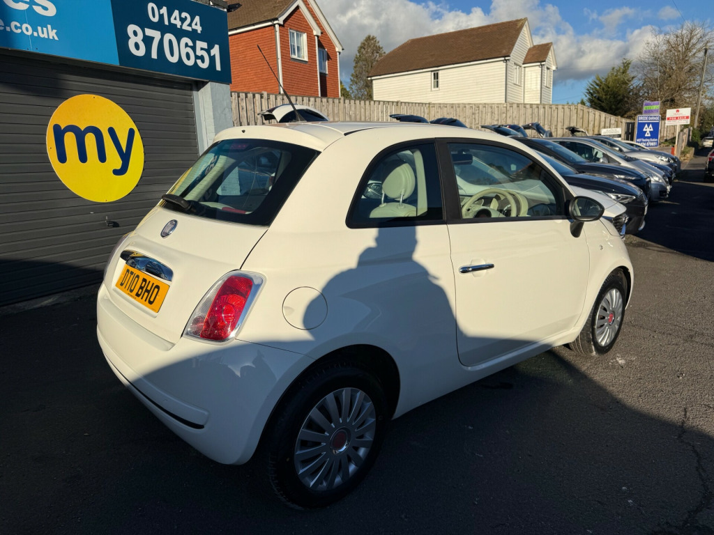 The 2010 Fiat 500 1.2 Pop is one of those cars that people can't help but smile at, and this one is ready to do the same for its next owner. With 90,308 miles, a clean white finish and the iconic Pop trim, this Fiat 500 delivers everything people love about these cars: personality, efficiency and a driving experience that never feels like a chore. Powered by a reliable 1.2 petrol engine producing 69 BHP, it reaches a top speed of 99 mph and still returns an impressive 58.9 MPG combined. It's a car designed for low running costs, easy manoeuvring and everyday stress-free driving.Inside, the Fiat 500 Pop keeps things simple, stylish and unmistakably Fiat. The retro-inspired dashboard, comfortable seating and clean layout create a cheerful, welcoming cabin that feels great whether you're heading into town or cruising along the coast. With electric front windows, practical storage and a well-designed driving position, it's built to make every trip feel easy. The compact size makes parking effortless, while the light steering and smooth manual gearbox keep city driving enjoyable.The exterior design is where the Fiat 500 truly stands out. Its rounded shape, distinctive headlights and timeless silhouette give it the charm that has made these cars so popular for so many years. Finished in white, it looks fresh, clean and full of character. With three doors and compact proportions, it fits perfectly into tight spaces, narrow roads and busy car parks exactly what small hatchbacks were made for.On the road, the 1.2 petrol engine provides smooth, dependable performance, ideal for learners, new drivers, commuters or anyone who wants a simple, economical car that gets the job done without draining the bank account. It's also ULEZ compliant, giving you access to low-emission zones without any extra charges and making this Fiat even more appealing for city-based drivers.This Fiat 500 is a brilliant option for first-time drivers, students, local commuters or anyone who wants a fun, friendly, economical hatchback. With its low tax cost of just £35 a year, great fuel economy and practical everyday usability, it delivers excellent value and the kind of easy ownership experience that makes Fiat 500s so popular throughout the UK. At £2,695, it offers affordability, reliability and charm in one compact package.Finance Options are available, pre-approved finance checks on our website. All our vehicles come with a Service, a 12 month MOT, 6 months Nationwide Warranty (extended warranties available), and FREE 12 months breakdown cover as part of our AA Dealer Promise agreement, ensuring ongoing roadworthiness and safety.Please don't hesitate to contact us by phone on 01424 870651 or email us for more information., in steel wheels, black electric adjust door mirrors, door mirrors - electrically adjustable, electric front windows, electric adjust door mirrors, space saver spare wheel, 4 speed heating and ventilation system, black ambience, folding rear seatbacks, ivory ambience, pop interior trim, seats - folding rear back, steering wheel - height adjustment, abs - anti-lock braking system, airbags - driver, airbags - front side, airbags - passenger, drivers knee airbag, ebd - electronic brakeforce distribution, isofix child seat attachments, remote central locking, window airbags, power steering - dualdrive electric, radio-cd and mp3 player, 12 months mot, 6 months nationwide warranty, aa dealer promise 12 months free breakdown cover