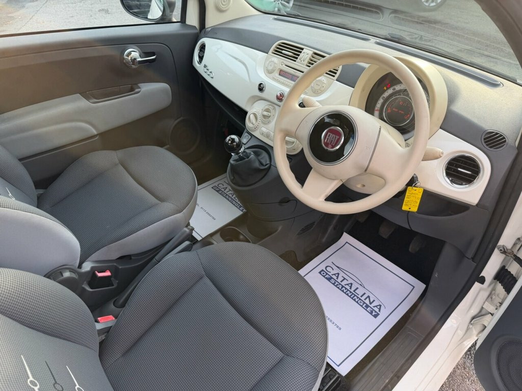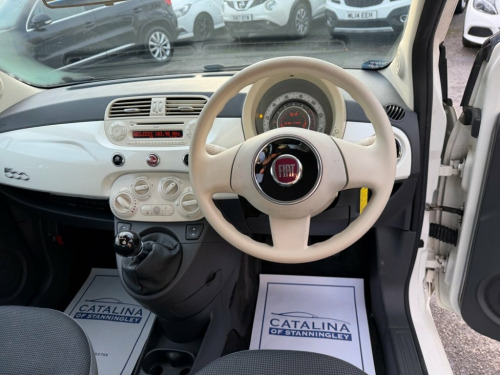 Fiat 500 1.2 Pop – £35 Tax | 8 Services | Great Condition Petrol | Manual | Euro 6 | 69 bhp | 56,081 Miles This Fiat 500 1.2 Pop is a charming, well-maintained example of Fiat's iconic and economical city car. With 56,081 miles from new, just two former keepers, and a strong 8-service history up to 56k, it has clearly been cared for throughout its life. Powered by the reliable 1.2-litre petrol engine producing 69 bhp, it delivers smooth, efficient performance with low running costs — including only £35 annual road tax and Euro 6 compliance, making it ideal for both city driving and clean-air zones. Finished in beautiful pearl white with a dark interior, this Pop model offers classic 500 styling, easy manoeuvrability, and great everyday practicality. A lovely, well-kept example of the Fiat 500 Pop — economical, stylish, and excellent value for money. 2014 FIAT 500 1.2 Pop Hatchback 3dr is offered to you for sale in Pudsey, Leeds, finished in white this FIAT 500 1.2 Pop Hatchback 3dr is one of many handpicked used cars that used car dealer, Catalina of Stanningley, Pudsey, Leeds have available for sale 12V Socket - Front, 14in Steel Wheels, ABS - Anti-Lock Braking System, ASR - Anti-Slip Regulation, Airbags - Driver, Airbags - Front Side, Airbags - Passenger, BAS - Brake Assistance System, Body Coloured Bumpers, Drivers Knee Airbag, Dualdrive Power Steering, EBD - Electronic Brakeforce Distribution, ESP - Electronic Stability Programme, Electric Front Windows, Fix and Go Puncture Repair Kit, GSI - Gear Shift Indicator, Grab Handle, Hill Holder, MSR - Motor Slip Regulation, Radio-CD and MP3 Player, Remote Central Locking, Seats - Passengers Memory Function, Space Saver Spare Wheel, Steering Wheel - Black, Steering Wheel - Height Adjustment, Thermal Windows, Tyre Pressure Monitor System, Win