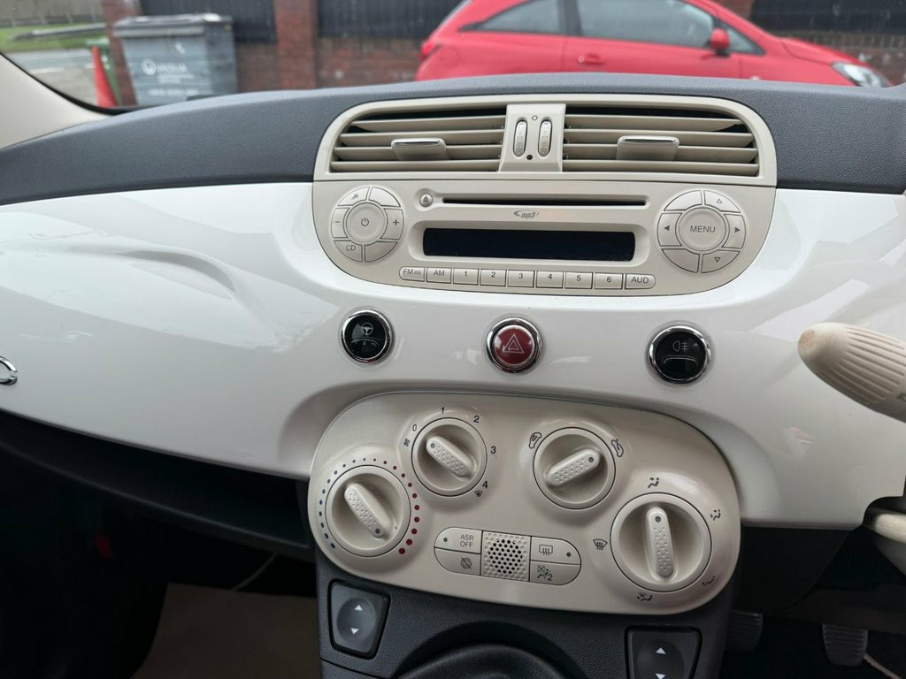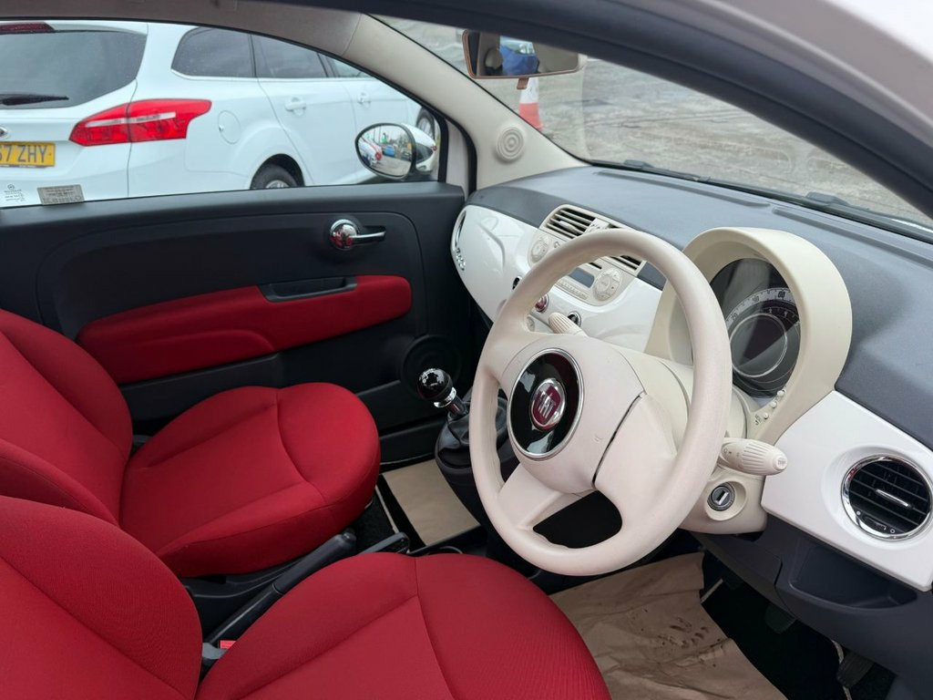 12 MONTHS MOT UPON SALE. This 2015 Fiat 500 Pop is a standout choice with its remarkably low mileage of just 44,000 miles, making it an exceptional find for its age. This particular model is equipped with a 1.2 litre petrol engine and meets the Euro 6 emission standards, ensuring it is compliant with current regulations. A clear vehicle history check provides peace of mind, confirming its well maintained past. The Fiat 500 Pop offers a compelling package with its impressive fuel economy, achieving an outstanding 59 miles per gallon. This, combined with its low CO2 emissions and placement in a low insurance group, demonstrates how this vehicle offers a more economical and affordable ownership experience compared to many others in its class. 12V Socket - Front, 14in Steel Wheels, ABS - Anti-Lock Braking System, ASR - Anti-Slip Regulation, Airbags - Driver, Airbags - Front Side, Airbags - Passenger, BAS - Brake Assistance System, Body Coloured Bumpers, Daytime Running Lights, Door Handles - Chrome, Drivers Knee Airbag, Dualdrive Power Steering, EBD - Electronic Brakeforce Distribution, ESP - Electronic Stability Programme, Electric Front Windows, Fix and Go Puncture Repair Kit, GSI - Gear Shift Indicator, Grab Handle, Hill Holder, MSR - Motor Slip Regulation, Radio-CD and MP3 Player, Remote Central Locking, Seats - Folding Rear Back, Seats - Passengers Memory Function, Space Saver Spare Wheel, Steering Wheel - Black, Steering Whe