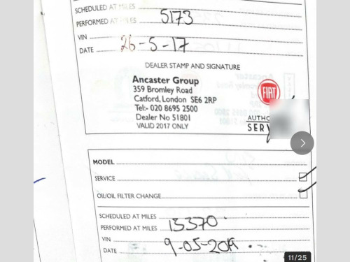 £35 A Year Tax,1 Lady Owner Since 2 Months Old,Ex Demo,Full Service History Fiat Services At Pdi 1832 - 5173 - 8781 - 13370 - 16582 - 19546 - 23557 - 28028 And Non Franchise At 32170 Miles.2 Remote Keys.Air Conditioning,Part Leather Sports Seats,15''18 Spoke Alloys,Radio Cd,Trip Computer,Traction Control,Fiat Overmats,Daylight Running Lights,Remote Central Locking,Electric Windows,Electric/Heated Mirrors,Height Adjustable Drivers Seat,Steering Wheel Rake Adjust,Isofix,Top Tether,Boot Light,Spacesaver Spare Wheel,Locking Wheel Nut....................................Like all our cars will be supplied with 1 Years M.O.T Service due and 3 months extendable warranty.Please feel free to read our Google customer reviews which we are very proud of before deciding where to look for your new car. v socket - front, radio-cd and mp3 player, 15in alloy wheels - 73z, body coloured bumpers, bumpers - chrome inserts, chrome exhaust tailpipe, chrome kit, chrome window contours, door handles - chrome, electric front windows, electrically adjustable heated door mirrors, fix and go puncture repair kit, space saver spare wheel, thermal windows, abs - anti-lock braking system, asr - anti-slip regulation, airbags - driver, airbags - front side, airbags - passenger, bas - brake assistance system, drivers knee airbag, ebd - electronic brakeforce distribution, esp - electronic stability programme, hill holder, msr - motor slip regulation, remote central locking, steering wheel - black, window airbags, air conditioning, door handles interior - chrome, grab handle, seats - passengers memory function, split folding 50:50 rear seat, steering wheel - height adjustment, daytime running lights, dualdrive power steering, exterior temperature sensor, gsi - gear shift indicator, tyre pressure monitor system